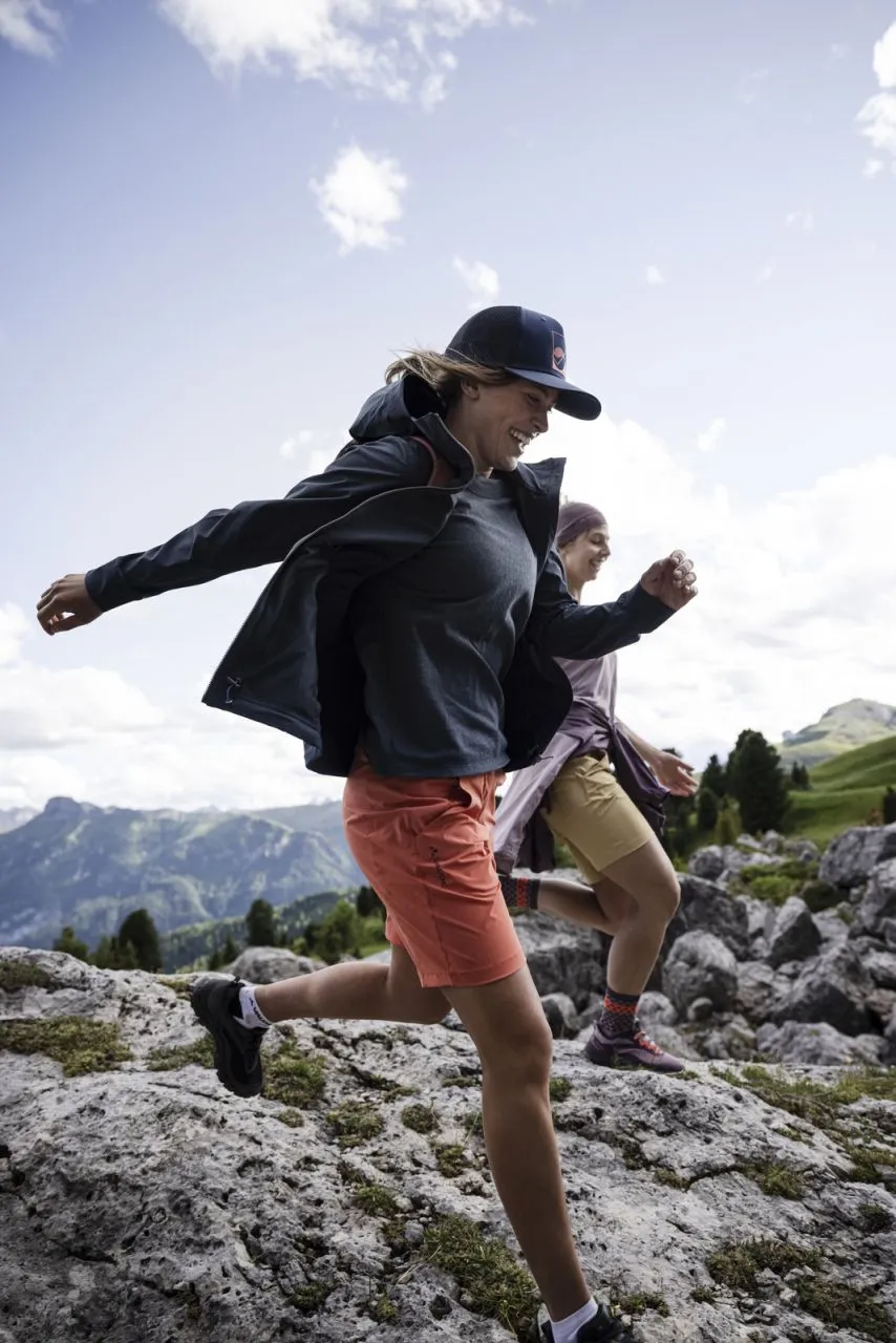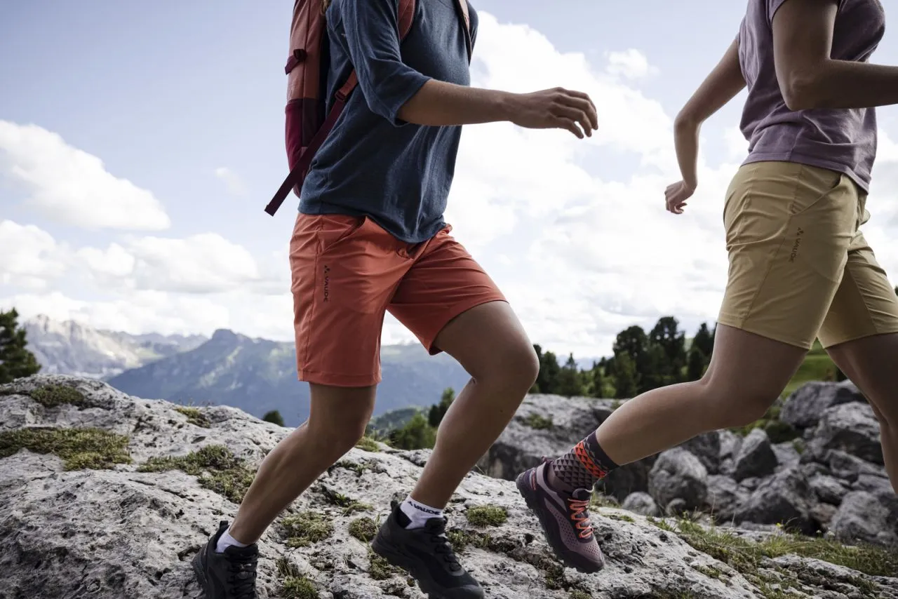 Il suffit de l’enfiler pour se lancer sur les pistes ! Le short Neyland pour femme procure un bien-être immédiat : Fabriqué à 88 % en polyester recyclé et à 12 % en élasthanne, le pantalon épouse chaque silhouette et accompagne tous les mouvements en randonnée. Le matériau élastique est léger et aérien sur la peau, et apprêté avec Eco-Finish pour repousser l’eau et la saleté. Le short n’absorbe en plus pratiquement aucune humidité et présente une extrême facilité d’entretien. Il se lave ainsi rapidement le soir et sera immédiatement prêt et sec dès le lendemain matin. Il se range dans tous les bagages sans se froisser sur les circuits de randonnée et en voyage. Le design sobre revendique un minimalisme sans compromis, prévoit cependant le rangement de clés, de carte bancaire ou d’argent liquide à portée de main dans les poches en biais et la poche de sécurité supplémentaire. Les passants et la ceinture large permettent d’ajuster confortablement le pantalon. Le label Green Shape de VAUDE garantit un produit écologique, fonctionnel et fabriqué dans des matériaux durables certifiés bluesign®.