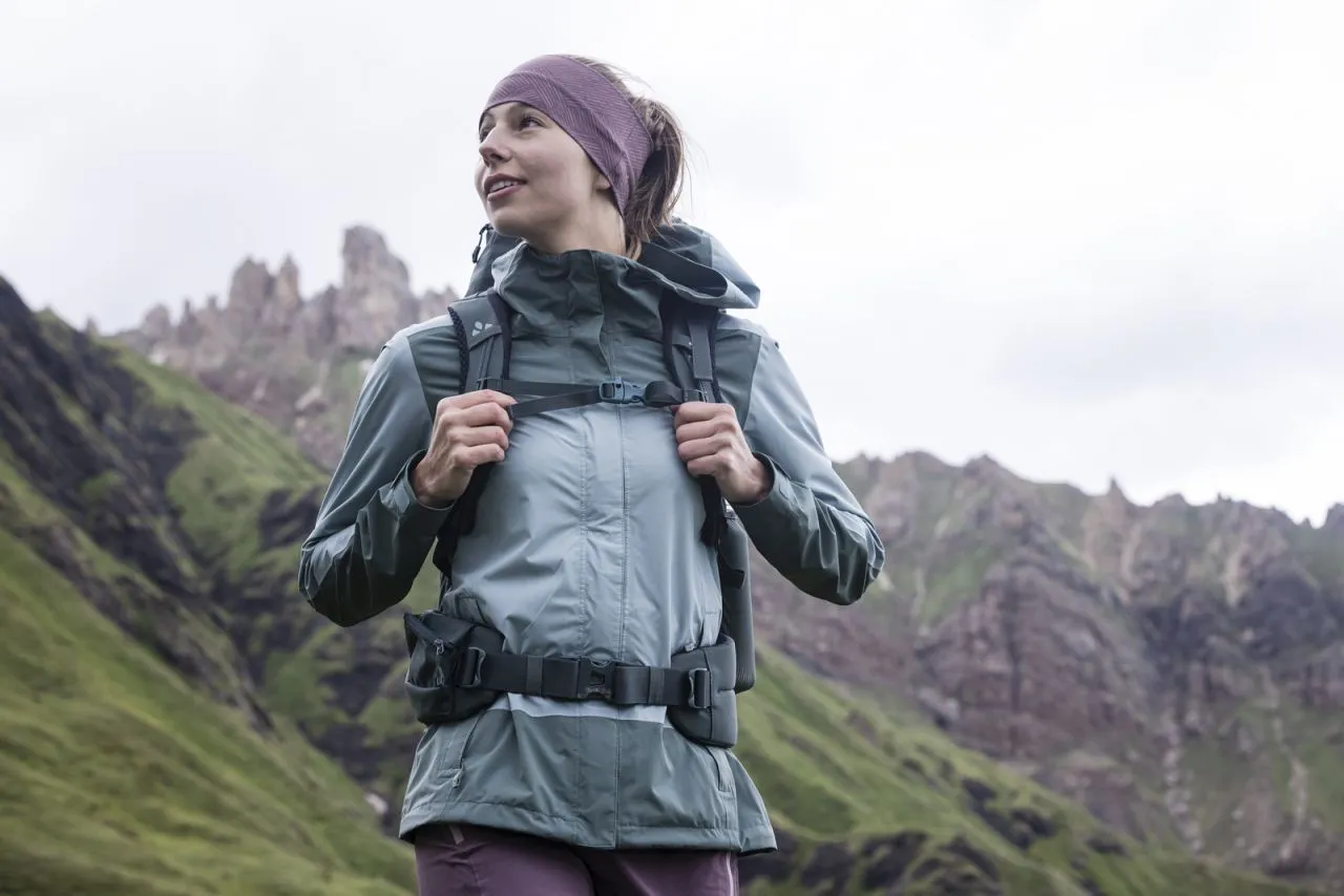 Une veste multitalent ultrafonctionnelle et moderne pour tous les temps : cette veste 2,5 couches offre une protection contre les intempéries optimale en randonnée et en voyage. Le vent et la pluie restent dehors et la température corporelle bien équilibrée. La veste est rapidement compressible pour couronner le tout. Que l’aventure prenne la forme d’une longue randonnée ou d’un voyage en sac à dos : La veste 2,5 couches garantit une régulation thermique agréable du corps même lors d’entreprises physiques grâce à la ventilation sous les aisselles. Le matériau recyclé stable au toucher doux et naturel offre un confort au porter élevé. Les poches zippées avant permettent de conserver de l’argent, un mobile et des mouchoirs en toute sécurité. Grâce à la fermeture à glissière bidirectionnelle, la veste 2,5 couches peut s’ouvrir du haut et du bas afin d’accéder facilement aux poches du pantalon et autres. La capuche peut se régler facilement d’une main et offre à la tête une liberté de mouvement suffisante. Sa particularité : le ruban élastique cousu permet d’enrouler la capuche en peu de gestes pour obtenir un col montant d’une part, et de replier toute la veste de manière peu encombrante d’autre part : gain de place garanti ! La veste 2,5 couches trouve ainsi de la place dans chaque sac ou sac à dos. Le label Green Shape de VAUDE garantit un produit écologique, fonctionnel et fabriqué dans des matériaux durables certifiés bluesign®.