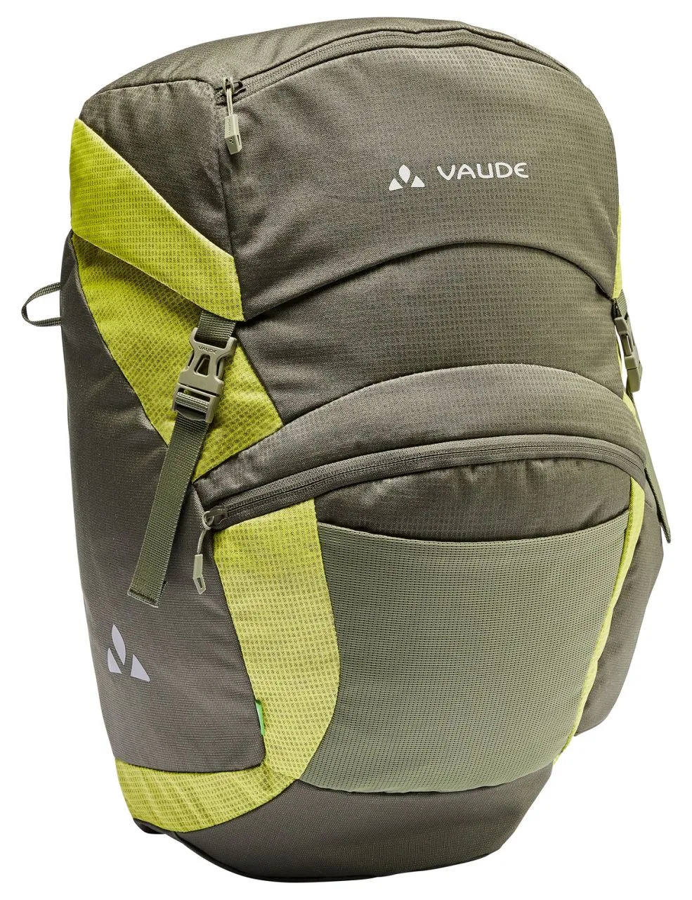 Les sacoches pour roue arrière OnTour sont des partenaires efficaces pour toutes les aventures à vélo. Le paquetage, protégé par le rabat avec compartiment séparé, peut être fortement comprimé par le soufflet d’élargissement dans le compartiment principal. Un porte-clés comme une poche extérieure appliquée pour l’accès rapide à une gourde ou une barre de céréales viennent parfaire l’équipement de cette merveille d’organisation. Une autre poche avant permet de conserver des cartes ou d’autres documents ; un maillot humide ou une veste légère peut trouver place dans la poche en filet élastique appliquée sur l’avant. Les sacs dotés d’éléments réfléchissants sont fixés de manière stable à droite et à gauche sur le porte-bagage arrière avec le système de fixation QMR 2.0, s’ajustent facilement à l’aide d’une molette et peuvent être facilement retirés en toute rapidité. Un petit cadenas de vélo (145/20) permet de la verrouiller directement sur le crochet QMR. Le volume de la paire de sacs au poids plume s’élève à 46 l. Des housses de pluie sont disponibles pour les deux sacs. Les sacs bénéficient d’une finition durablement déperlante Eco Finish sans PFC. Un bon point pour toi comme pour l’environnement.