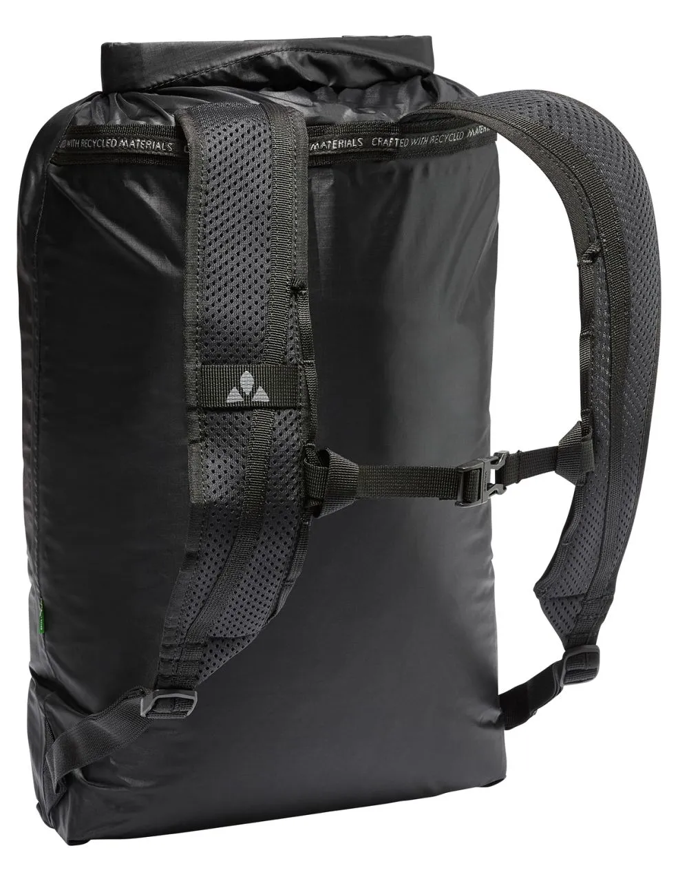 Imperméable, minimaliste et polyvalent – voici le nouveau sac à dos urbain Packable Backpack 9. Il est très compressible et donc optimal pour les voyageurs et les minimalistes au quotidien en quête d’un daypack écologique avec valeur ajoutée. De par son matériau certifié bluesign®, imperméable et sa fermeture roll-top polyvalente, son chargement est variable et il est réellement étanche à l’eau. Le matériau principal résistant du sac à dos avec fermeture roll-top est fabriqué via une méthode du bilan massique à partir entre autres de pneus usagés recyclés. Outre sa longue durée de vie remarquable, il contribue effectivement à la protection du climat. Car la fabrication de ce sac à dos avec fermeture roll-top ne débouche sur pratiquement aucune découpe superflue, car le patron rectangulaire permet de réutiliser au moins 97 % du matériau pour la fabrication du sac à dos ! Le Packable est climatiquement neutre : les émissions issues des matériaux, de la fabrication et du transport ont été déterminées de manière holistique et systématiquement réduites. Les émissions actuellement inévitables sont compensées par l’organisation indépendante à but non lucratif « myclimate ». Le label Green Shape de VAUDE garantit un produit écologique, fonctionnel et fabriqué dans des matériaux durables certifiés bluesign®.