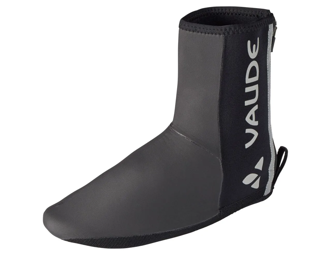 Notre sur-chaussure la plus chaude pour tous ceux qui doivent mettre le nez dehors, qu’il vante ou qu’il pleuve ou qu’il neige ! Pour les loisirs ou le trajet domicile-travail, ce couvre-chaussure protège tant la chaussure que les pieds grâce à sa matière néoprène soudée à l’avant et qui épouse le pied. Le zip arrière ne s’ouvre pas complètement en bas, ce qui facilite beaucoup l’enfilement et le retrait, ces opérations étant soutenues par une boucle de maintien. La large bande de fermeture et le logo VAUDE sont réfléchissants pour une meilleure visibilité lors du pédalage. La partie inférieure est renforcée pour éviter tout endommagement lors du maintien nécessaire ou de quelques pas.