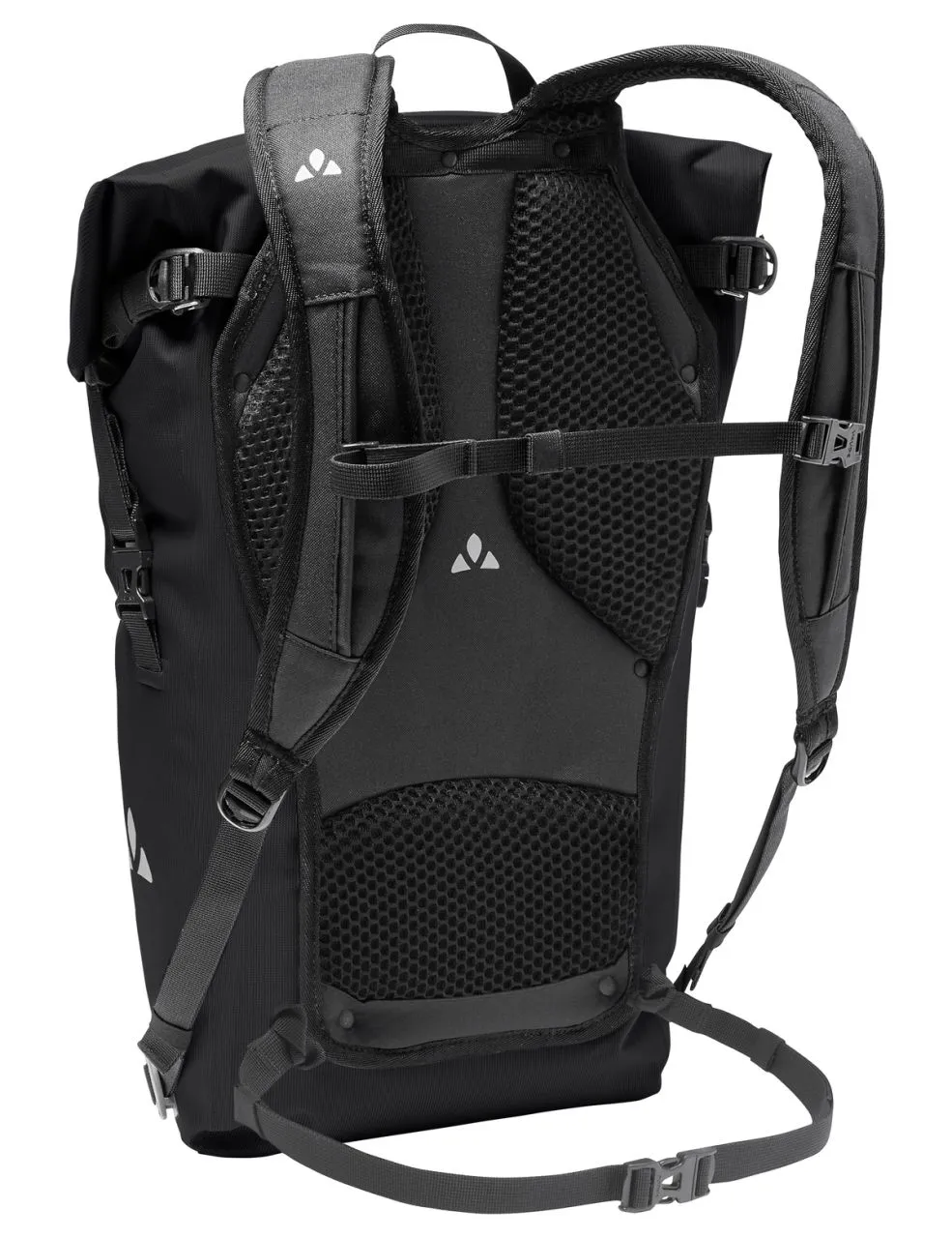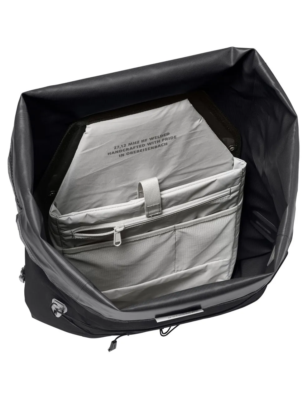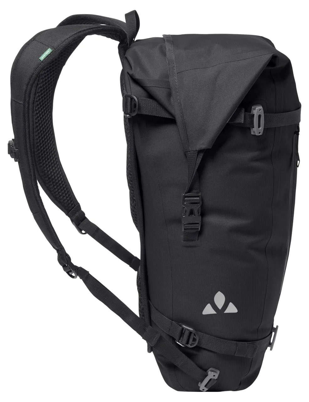 Proof – son nom annonce la couleur ! Ce sac à dos imperméable au look sobre est un véritable multitalent pour la ville, le vélo, le trail et la montagne, et ce par tous les temps ! Des bretelles Ergoshape confortables et un rembourrage dorsal placé au bon endroit permettent un maintien sûr même sans ceinture ventrale, et malgré une charge élevée ou une petite taille corporelle. Des sangles de compression en bas et en haut permettent de fixer précisément le contenu selon le litrage. La fermeture par enroulement éprouvée peut être détendue au choix vers le bas sur les côtés ou clipsée en haut, et offre un accès rapide au compartiment principal. Un compartiment rembourré pour ordinateur portable jusqu’à 13,3″ est intégré sur la partie dorsale intérieure, ainsi qu’un compartiment zippé et une pochette d’insertion pour conserver les petits accessoires. Une poche soudée de manière étanche sur l’avant peut accueillir une barre énergétique, une carte ou un GPS. Les 4 attaches multiusages soudées permettent en plus de fixer des équipements supplémentaires comme un casque, une veste ou un vêtement mouillé à l’aide du cordon compris dans la livraison. Des imprimés de logo réfléchissants sur l’avant et les côtés renforcent la visibilité dans l’obscurité. Le matériau principal extrêmement résistant à l’usure certifié bluesign® est composé à 68 % d’Econyl recyclé. Proof 22 est muni de jointures imperméables selon une technique de haute fréquence dans le respect de l’environnement au siège social en Allemagne.