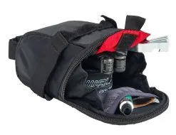 Pour les minimalistes. Cette grande sacoche ultra légère à fixer à la selle, avec ses 2 petits compartiments intérieurs qui permettent de ranger le set de premiers secours.