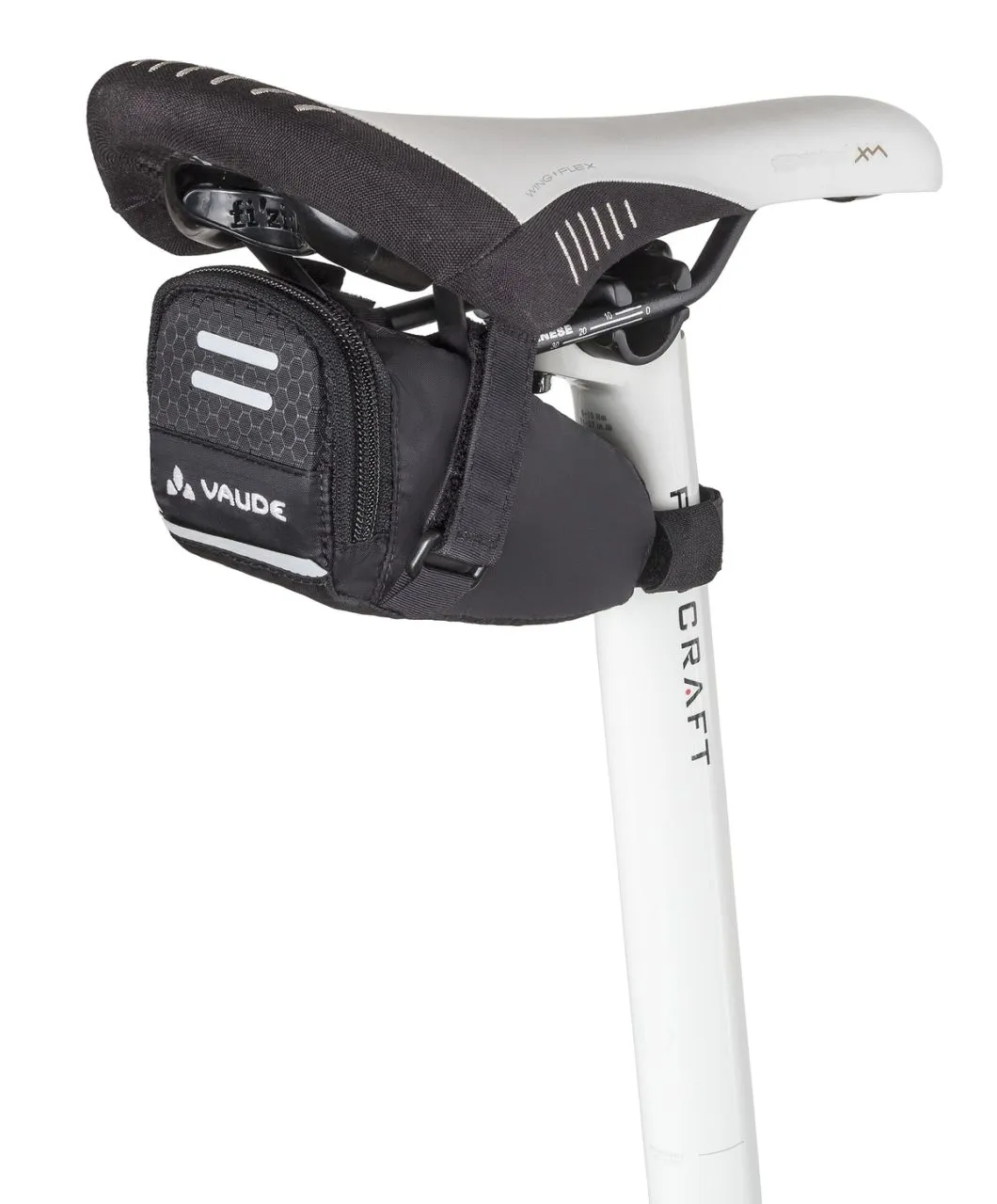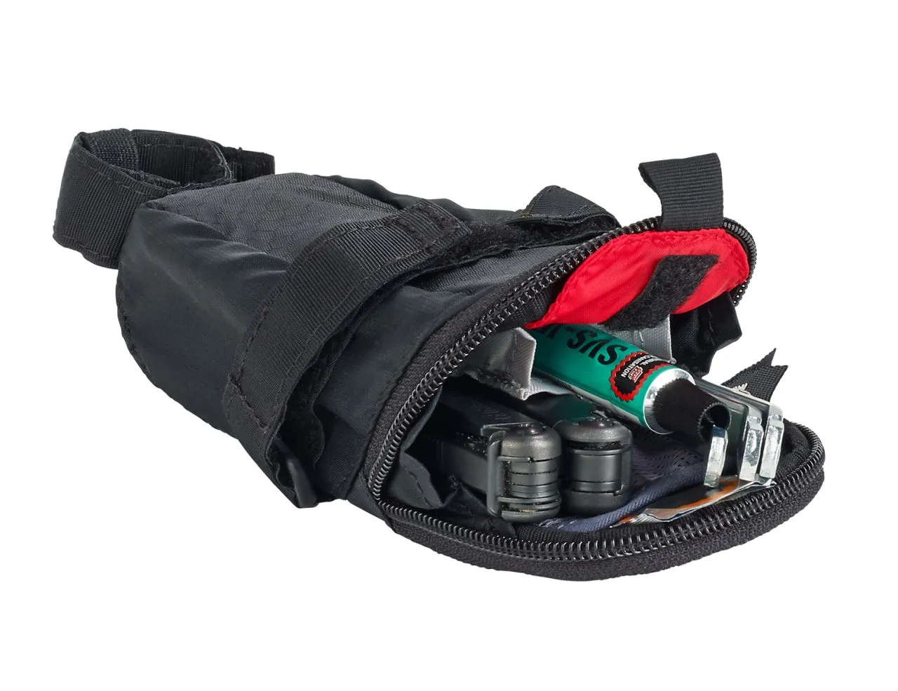 Pour les minimalistes. Cette sacoche de taille moyenne ultra légère à fixer à la selle, avec ses 2 petits compartiments intérieurs qui permettent de ranger le set de premiers secours.