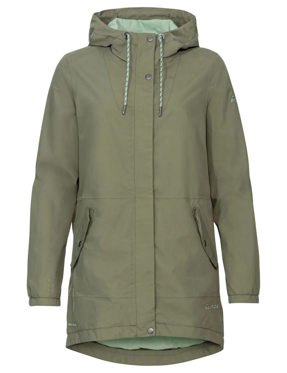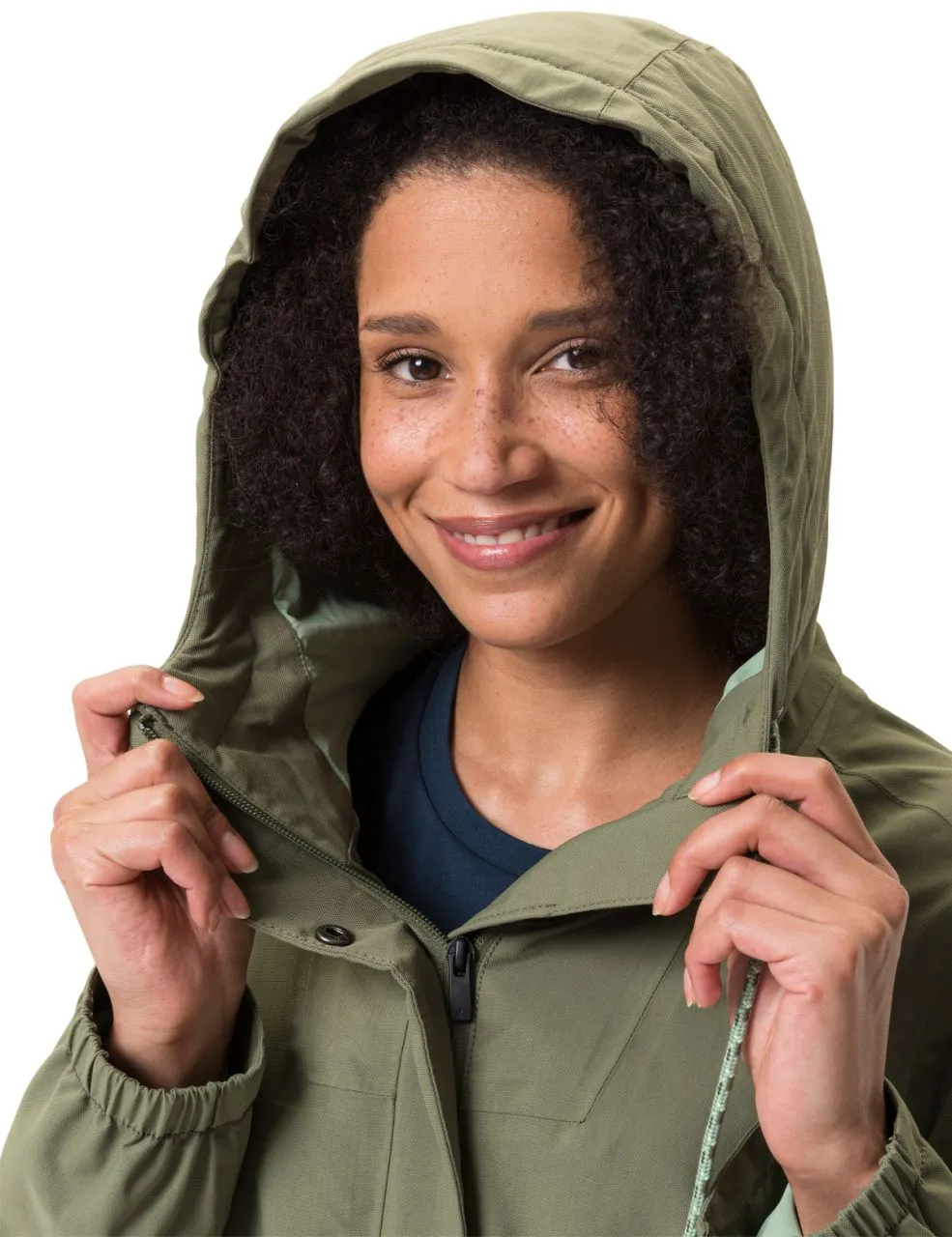 Une tenue branchée et durable qui apporte une protection parfaite contre les intempéries : la parka femme Redmont II décontractée et à la coupe ample se porte tout autant à la fac, au jour le jour et lors des loisirs, et est fabriquée à 100 % en polyamide recyclé dans sa nouvelle édition. Avec sa membrane respirante et imperméable, ce multitalent protège son porteur efficacement contre la pluie et le vent. Les poches en biais avec bouton-pression empêchent l’eau de pénétrer en cas d’averses tout en mettant à l’abri des accessoires importants. Votre mobile se glisse dans la poche intérieure sans difficulté. La coupe décontractée, la capuche réglable par des cordons et le tissu résistant à l’usure feront de Redmont Parka II votre tenue favorite facile d’entretien et polyvalente pour la vie citadine de tous les jours. Ce produit est imperméabilisé avec la finition Eco Finish, écologique et sans fluorocarbures (PFC). Le label Green Shape de VAUDE garantit un produit écologique, fonctionnel et fabriqué dans des matériaux durables.