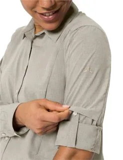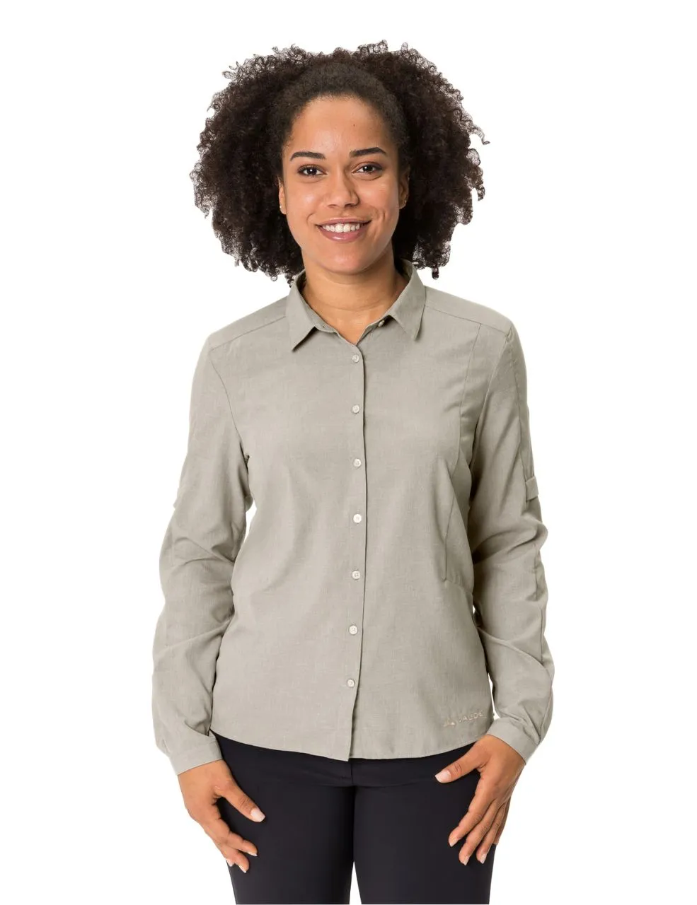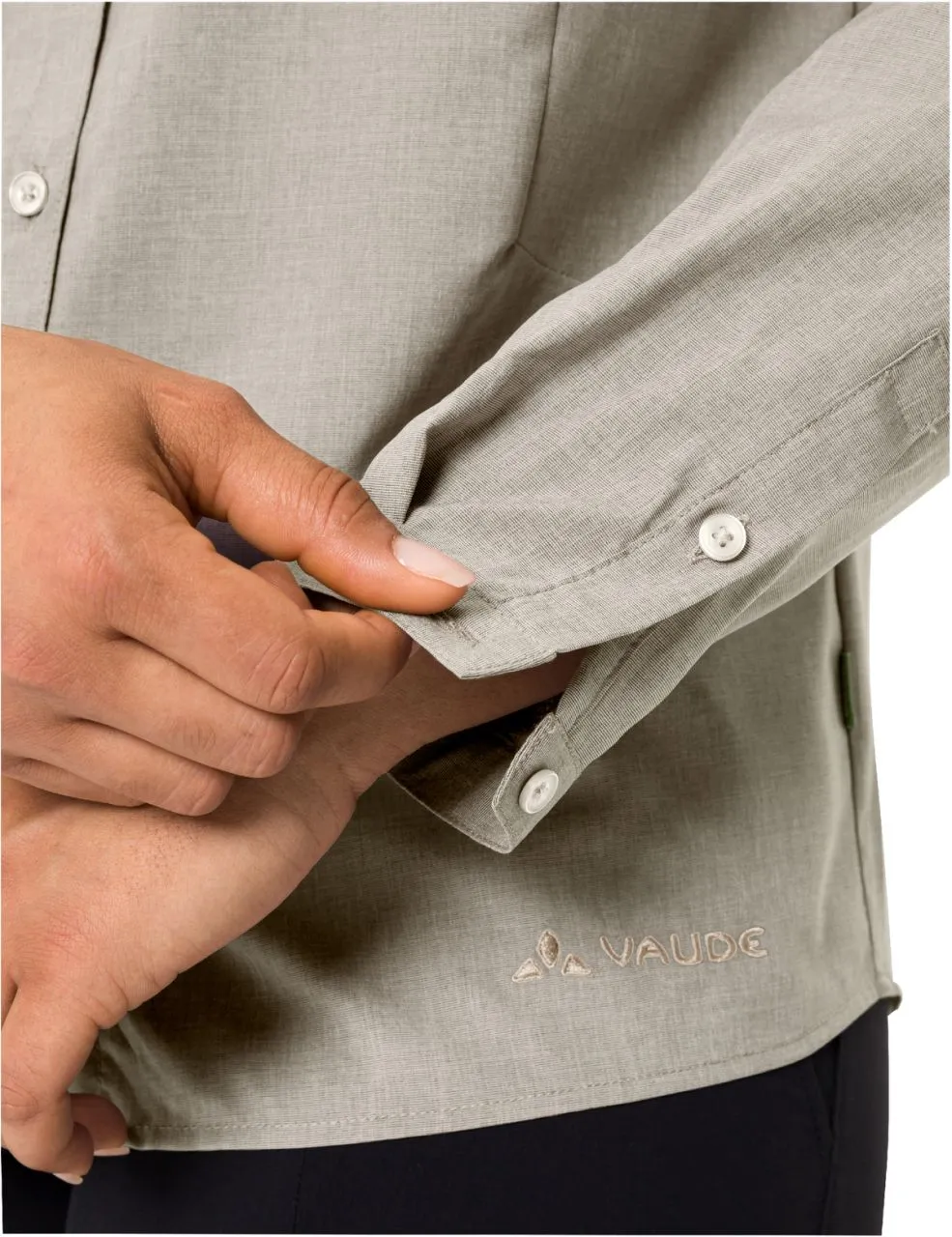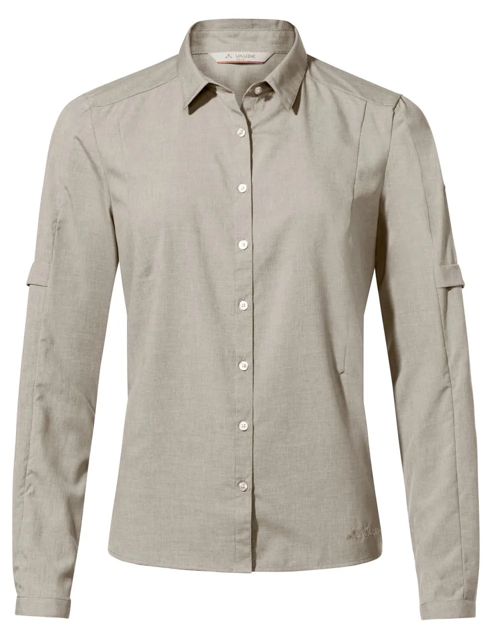C’est parti pour le prochain circuit de refuge en refuge, sans oublier ce chemisier de trekking indispensable ! Grâce au polyester recyclé, il apporte toutes les propriétés fonctionnelles requises pour une randonnée active. Il est facile d’entretien et sèche rapidement. On peut ainsi le nettoyer rapidement le soir en refuge et le réutiliser dès le lendemain matin sans aucun pli. La matière douce est une caresse pour la peau et offre une protection contre les UV avec l’indice LSF 50+. Le chemisier de trekking est traité avec la substance végétale du géraniol qui repousse naturellement les moustiques, ce qui constitue un avantage considérable aux abords des zones humides. Le chemisier légèrement élastique s’accompagne d’une belle liberté de mouvement et fait belle impression porté dans ou sur le pantalon. Les manches dotées de manchettes étroites se remontent simplement et se fixent à l’aide d’une patte quand le mercure se met à grimper. Le label Green Shape de VAUDE garantit un produit écologique, fonctionnel et fabriqué dans des matériaux durables certifiés bluesign®.