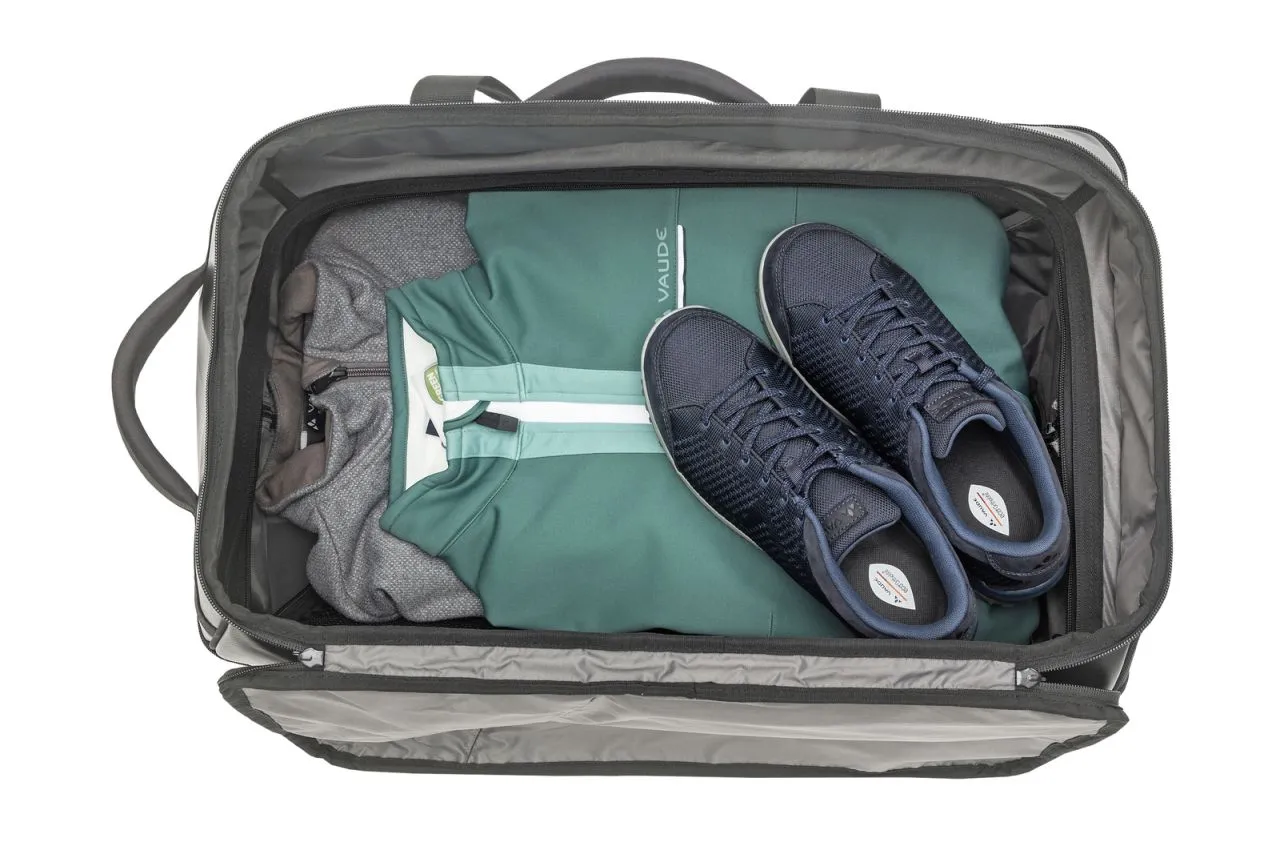 Le remĂšde contre la fiĂšvre du voyage : TrĂšs pratique, le Rotuma II 65 se remplit facilement et simplement. GrĂące Ă ses roulettes bien manĆuvrables, il t’accompagne rapidement vers ta destination. Rotuma est inspirĂ© de la gamme de trolleys Ă©prouvĂ©s Tobago – il est fabriquĂ© dans un matĂ©riau de bĂąche Ă©cologique et sans PVC et dans un design optimisĂ©. TrĂšs agrĂ©able Ă porter grĂące aux poignĂ©es Ă©paisses et rembourrĂ©es. Les papiers, magazines et documents de voyage sont toujours Ă portĂ©e de main dans la poche frontale zippĂ©e facilement accessible. Le solide matĂ©riau en bĂąche rĂ©siste Ă de nombreuses contraintes tout en affichant un look dĂ©contractĂ©. Allez, câest parti !