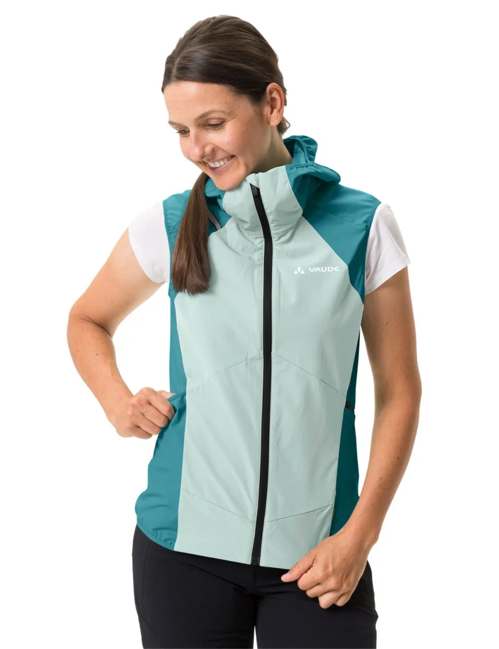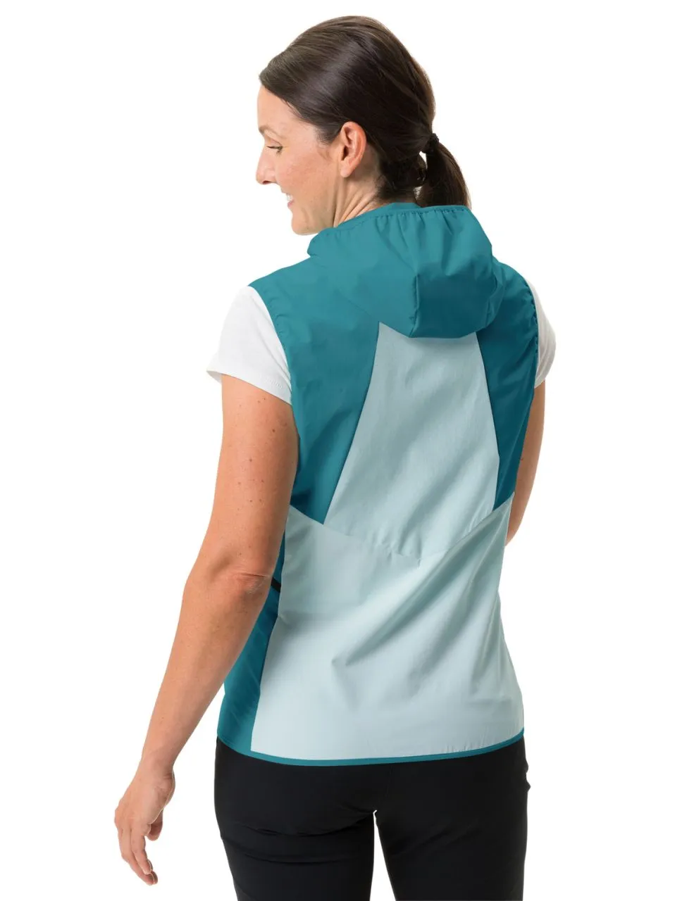 Le gilet Women’s Scopi Vest complète la garde-robe outdoor par une protection contre le vent et les intempéries rapidement opérationnelle et à faible encombrement. Le gilet léger et élastique femme est rapidement en main en cas de coup de vent et de froid. Il protège en plus la tête contre le vent froid avec sa capuche ajustée. Le gilet multifonction est conçu pour les sportives qui privilégient une liberté de mouvement maximale, en escalade comme sur une virée de fin de journée en montagne. Des éléments réfléchissants et deux poches en biais complètent l’équipement de ce gilet femme polyvalent. Le label Green Shape de VAUDE garantit un produit écologique, fonctionnel et fabriqué dans des matériaux durables certifiés bluesign®. En tant que membre Leader de l’organisme indépendant Fair Wear, VAUDE s’engage en faveur de conditions de travail et de salaires équitables. Ce gilet pour femme est de plus climatiquement neutre : les émissions issues des matériaux, de la fabrication et du transport ont été déterminées de manière holistique et systématiquement réduites. Les émissions actuellement inévitables sont compensées par l’organisation indépendante à but non lucratif « myclimate ».