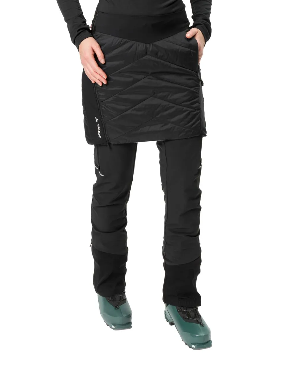Gravir la montagne sans avoir froid et tout en faisant belle figure, voici le pari tenu par la jupe réversible Sesvenna Reversible Skirt pour femme ! Cette jupe réversible est rembourrée en PrimaLoft® Silver Insulation Eco respectueux de l’environnement, et s’enfile rapidement au-dessus du pantalon grâce à la fermeture éclair latérale continue. Les couleurs peuvent se décliner au gré des humeurs. La jupe isolante femme offre une tenue confortable grâce à sa ceinture élastique et aux empiècements stretch latéraux et protège les reins et le haut des cuisses du froid, afin de savourer pleinement l’ivresse des sommets après une ascension pénible. La jupe réversible est apprêtée avec la finition Eco Finish, déperlante, écologique et sans fluorocarbures (PFC). En tant que membre élevé au rang de Leader de l’organisme indépendant Fair Wear, VAUDE s’engage en faveur de conditions de travail et de salaires équitables. Ce produit est de plus climatiquement neutre : les émissions issues des matériaux, des processus de fabrication et du transport ont été déterminées de manière holistique et systématiquement réduites. Les émissions actuellement inévitables ont été entièrement compensées par l’organisation indépendante à but non lucratif « myclimate ».