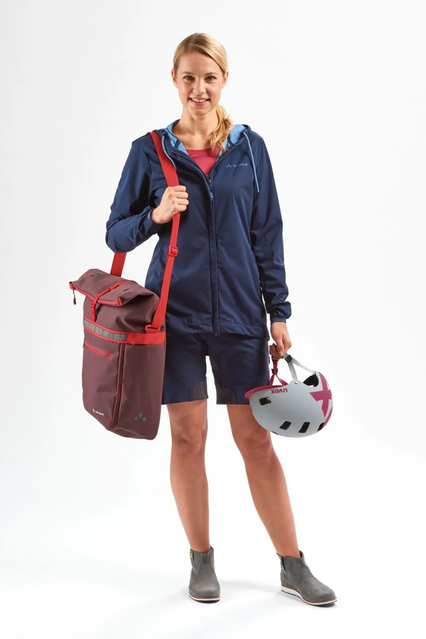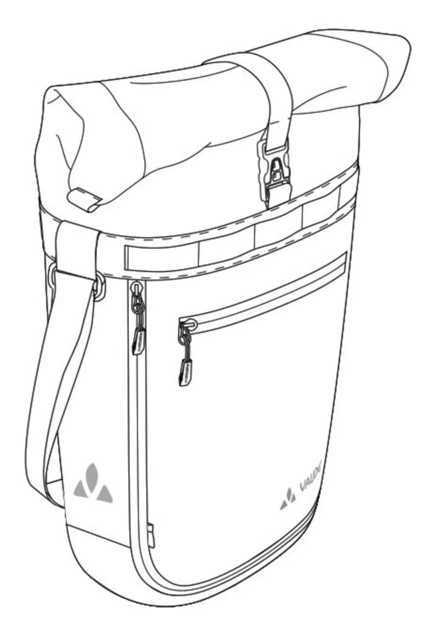 Faire ses courses à vélo ? Pas de soucis ! Grâce à cette sacoche à vélo, vous pourrez faire votre marché n’importe où. Le grand compartiment principal avec fermeture en papillote, offre suffisamment de place pour ranger les courses, les vêtements de sport et autres affaires pour vos loisirs. Grâce à la bandoulière fixe et à un zip supplémentaire qui permet d’agrandir le volume, cette sacoche est parfaite pour de longues journées de shopping. Dans la partie avant de la sacoche, une poche intérieure permet de ranger les objets de valeur. A la sangle réfléchissante vous pourrez attacher de petites choses grâce à un mousqueton. Une housse de pluie intégrée assure un transport bien au sec de vos courses même s’il pleut. Ce produit est imperméabilisé grâce à la finition Eco Finish, écologique et sans perfluorocarbures (PFC).