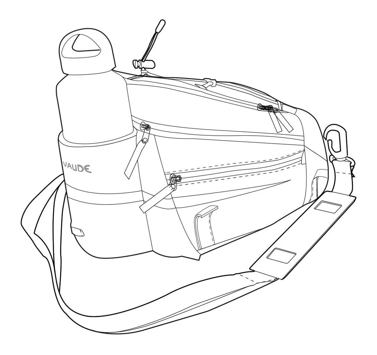 Porte vos bagages ! Cette sacoche pour porte-bagage avec une contenance de 9+2 litres et porte-gourde, peut être fixée sur le porte-bagage du vélo grâce à l’adaptateur i-Rack. Cela permet de transporter notamment la batterie de votre vélo électrique. Grâce aux tendeurs, il est possible de transporter encore plus de bagages. Uniquement pour les porte-bagages i-Rack.