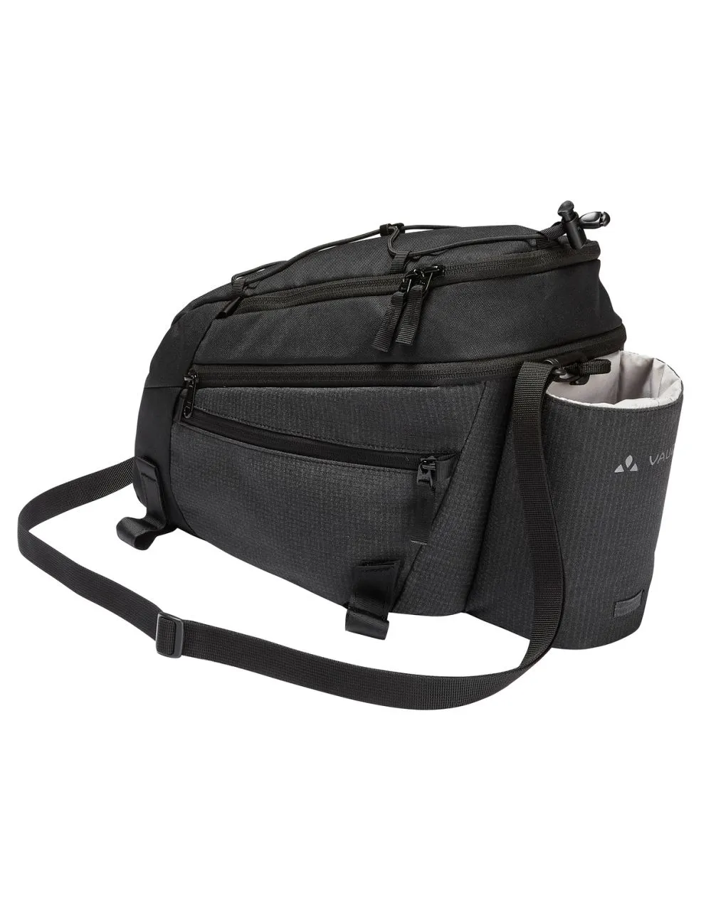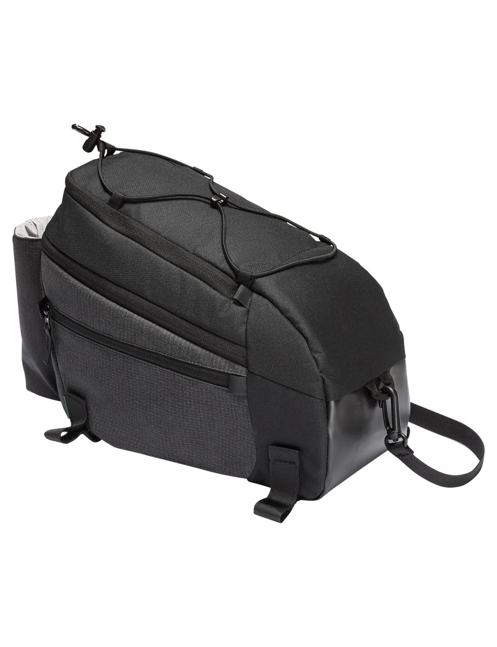 Un as du paquetage qui brille de mille feux ! La sacoche de porte-bagages Silkroad L Luminum assure une meilleure visibilité grâce à son matériau principal réfléchissant et beaucoup à offrir avec sa capacité 9 + 2 l. Son compartiment principal spacieux peut accueillir de nombreux équipements. Un compartiment intérieur zippé assure la bonne organisation des mobile, porte-monnaie, etc., ainsi que 2 compartiments latéraux et une poche zippée dans le rabat. L’extension de volume et le filet tendeur araignée sur le rabat sont opportuns quand il s’agit de transporter un plus grand volume. Le porte-bouteille réceptionne des bouteilles jusqu’à 1 l de volume, la bandoulière amovible facilite le transport à pied. Un porte-clignotant ainsi qu’une housse de pluie contenue dans la livraison complètent l’équipement tout confort. Silkroad L se fixe à l’aide de 4 bandes velcro sur chaque porte-bagages et bénéficie d’une fabrication écologique en polyester recyclé.