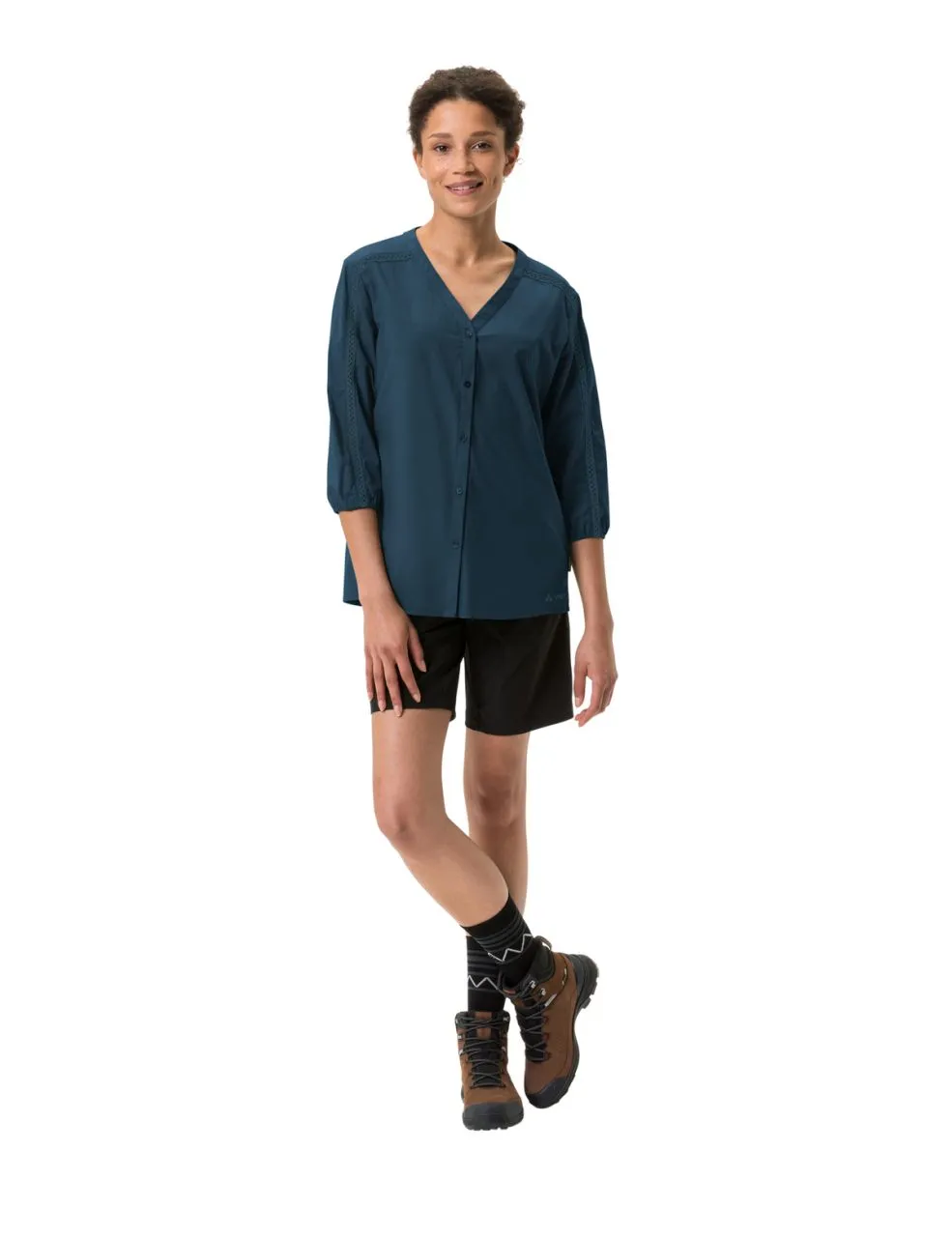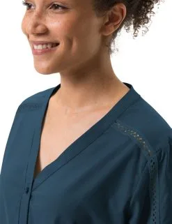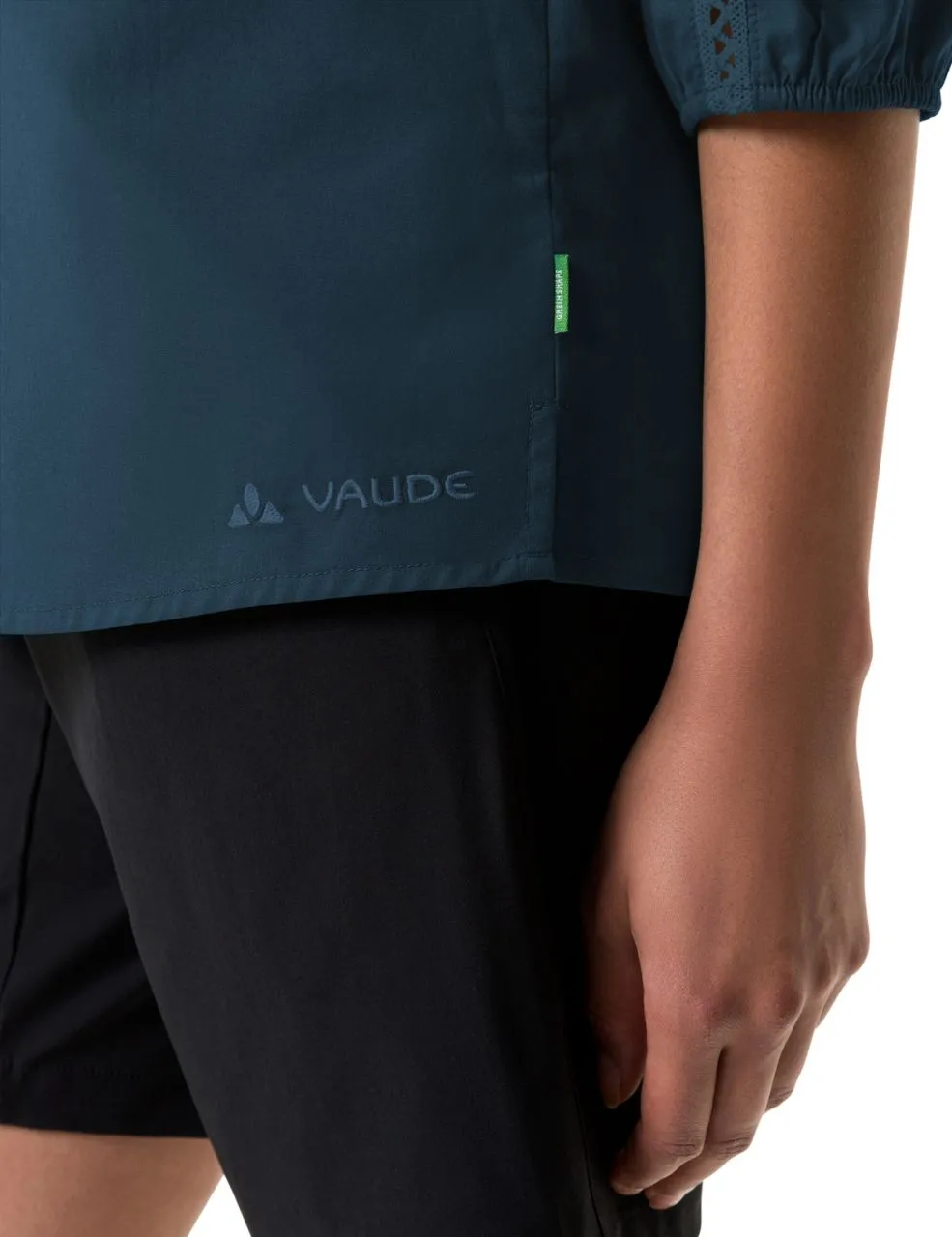 Les chaleurs torrides de l’été peuvent arriver avec ce chemisier avec manches ¾ pour femme. Le maillot Skomer pour femme a des manches ¾ avec fermeture élastique qui se laissent relever. Une bordure cousue au crochet apporte à la fois un look ludique et une brise fraîche sur la peau. Très doux et agréable sur la peau, le chemisier féminin est confectionné en coton biologique et polyester. Grâce à sa haute teneur en fibres naturelles, le chemisier femme offre des propriétés efficaces anti-odeurs, de régulation de l’humidité et se montre ultrafacile d’entretien et à séchage rapide par sa teneur en polyester. Le choix idéal pour le quotidien ou les aventures en pleine nature sous la chaleur. Le label Green Shape de VAUDE garantit un produit écologique, fonctionnel et fabriqué dans des matériaux durables certifiés bluesign®. Ce produit est de plus climatiquement neutre : les émissions issues des matériaux, de la fabrication et du transport ont été déterminées de manière holistique et systématiquement réduites. Les émissions actuellement inévitables sont compensées par l’organisation indépendante à but non lucratif « myclimate ».