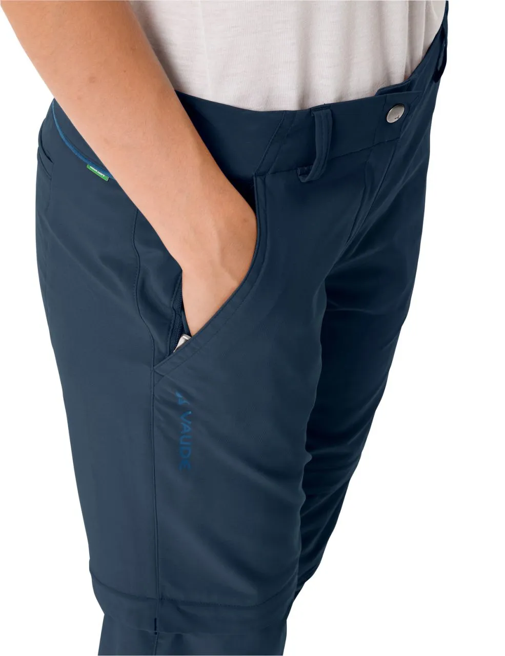 Fonctionnel et pratique en virée, confortable et polyvalent au quotidien – voici toutes les qualités du pantalon Women’s Skomer ZO Pants II à la coupe près du corps. Les fermetures à glissière au niveau des cuisses permettent de convertir en deux temps trois mouvements le long pantalon zippé de randonnée et un short et vice et versa. Les genoux préformés et le tissu agréable en polyester recyclé à haute teneur en élasthanne offrent une grande liberté de mouvement et un haut confort au porter. La protection UV intégrée de 40+ protège la peau d’un rayonnement solaire excessif. La matière écologique est facile d’entretien et sèche ultra rapidement, pour pouvoir enfiler le pantalon sitôt après l’avoir lavé. Le pantalon Skomer ZO Pants II est doté de deux poches zippées à l’avant et d’une poche arrière. Le label Green Shape de VAUDE garantit un produit écologique, fonctionnel et fabriqué dans des matériaux durables et certifiés bluesign®.