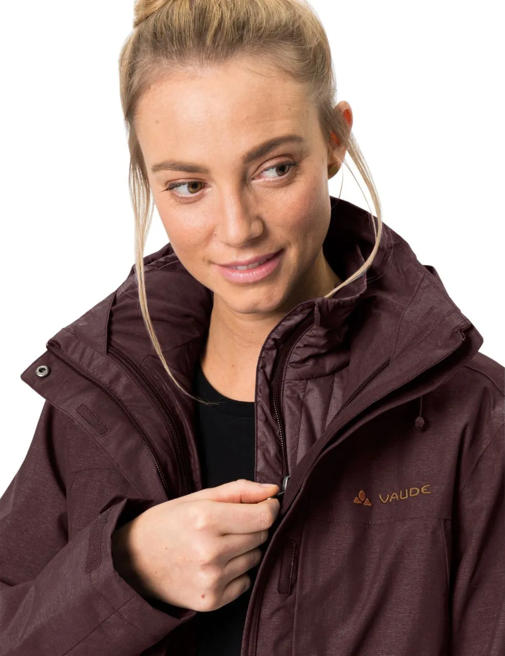 La veste double imperméable et étanche au vent est idéale pour les femmes actives adeptes du plein air. La surveste respirante séduit par sa coupe féminine et sportive et peut être plissée à la taille. Elle peut servir de veste de pluie à l’automne et de parfaite veste d’hiver en combinaison avec la veste intérieure. Qu’il pleuve, neige ou sous la tempête : la veste Women’s Skomer 3 in 1 Jacket II dispense une chaleur moelleuse lors des activités outdoor et tient au sec grâce à sa membrane Ceplex Active. La capuche est réglable et amovible, le col montant protège du vent et du froid. Sa coupe allongée permet de garder les zones sensibles au chaud, comme le fessier et les reins. La veste extérieure est fabriquée dans une matière innovante : le matériau principal en polyamide recyclé est obtenu à travers une méthode certifiée du bilan massique. De l’huile de pyrolyse qui entre dans la fabrication du polyamide conventionnel est obtenue à partir de pneus usagés : ceci permet de réduire le CO2 jusqu’à 60 %. La veste extérieure est apprêtée avec la finition écologique Eco Finish : les gouttes de pluie glissent tout en renonçant au fluorocarbure nocif pour l’environnement (PFC). La veste intérieure au matelassage tendance et dotée d’un rembourrage isolant PrimaLoft® en bouteilles PET recyclées dispense une chaleur agréable. La veste intérieure composée à 100 % de matériaux recyclés s’attire tous les regards à la mi-saison. Le label Green Shape de VAUDE garantit un produit écologique, fonctionnel et fabriqué dans des matériaux durables certifiés bluesign®. Ce produit est de plus climatiquement neutre : les émissions issues des matériaux, des processus de fabrication et du transport ont été déterminées de manière holistique et systématiquement réduites. Les émissions actuellement inévitables ont été entièrement compensées par l’organisation indépendante à but non lucratif « myclimate ».