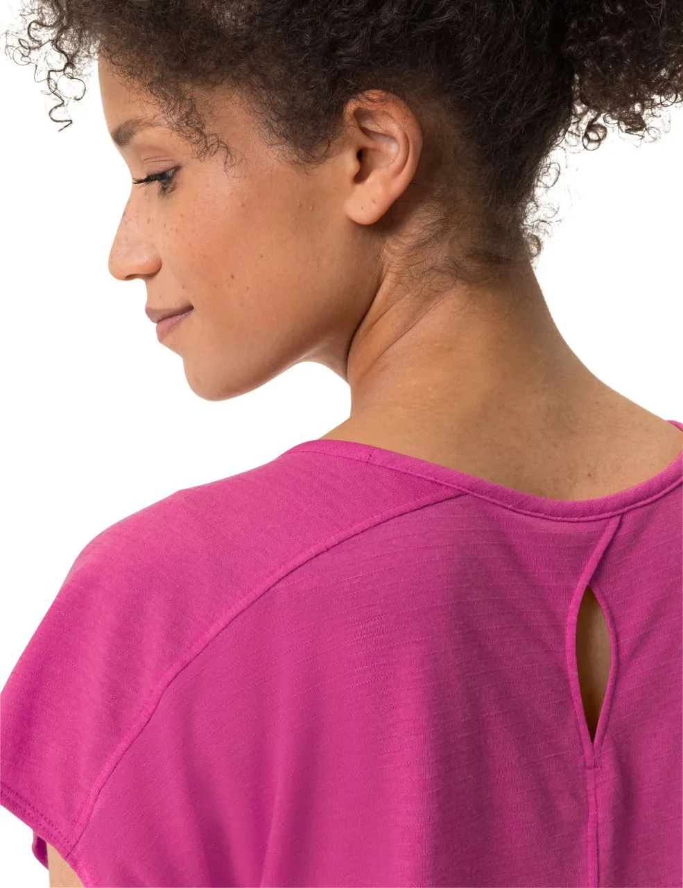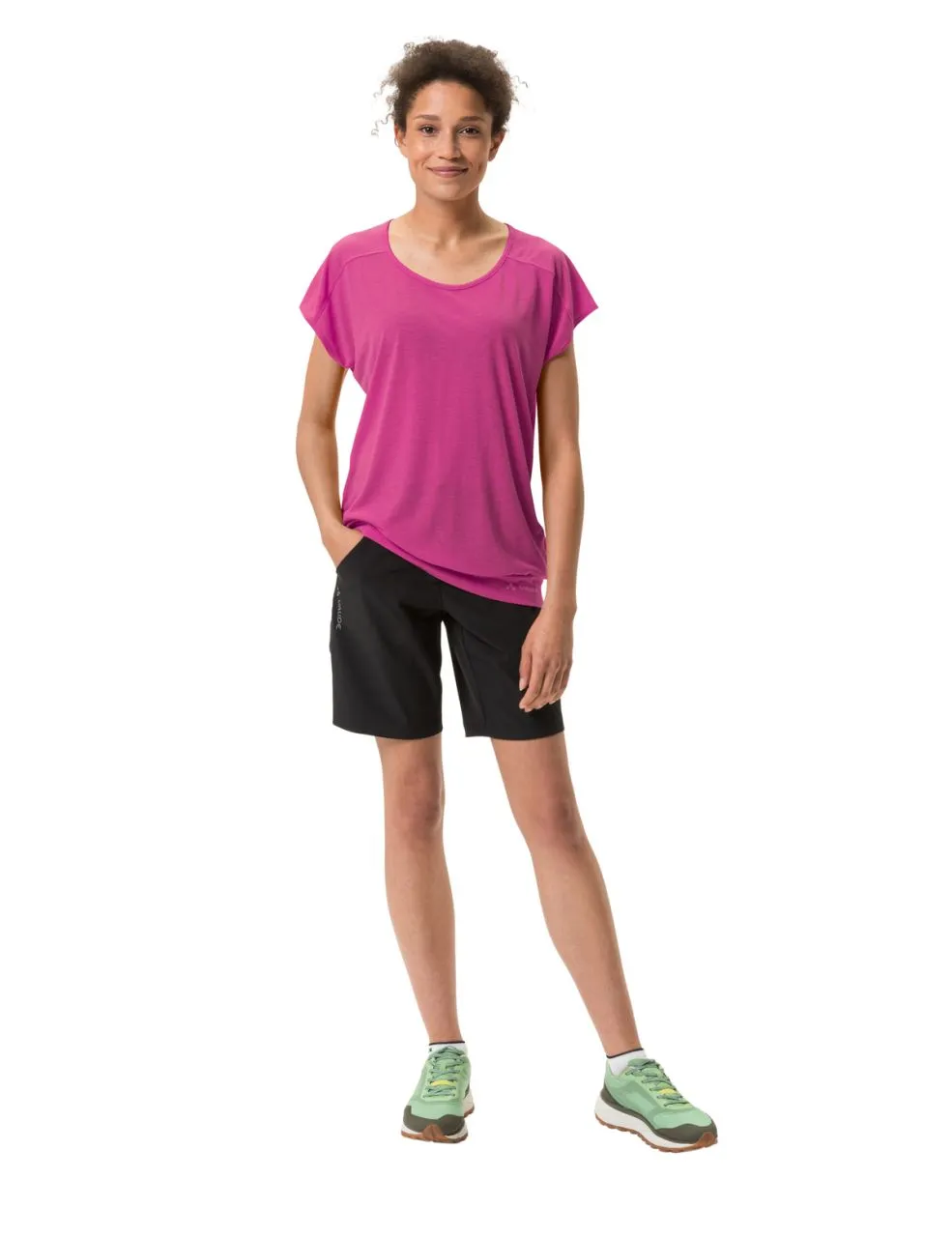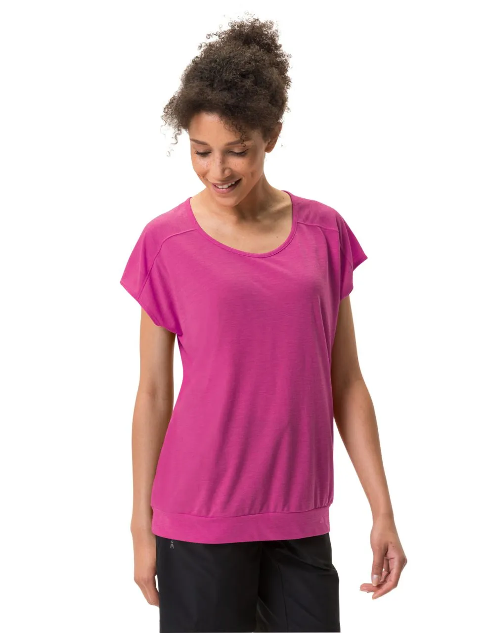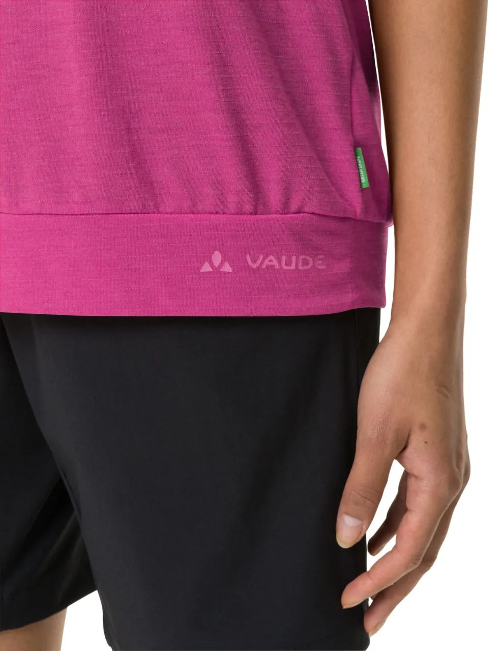 Toujours bien à propos : le t-shirt convient au mieux aux randonnées modérées et comme tenue basique au quotidien, tout en affichant un côté écolo. Le mélange de matières à 75 % de polyester recyclé et à 25 % de fibre de bois apporte un effet rafraichissant et évite les mauvaises odeurs sous la chaleur. Le t-shirt absorbe bien l’humidité lors de la randonnée sans toutefois se sentir mouillé et sèche très rapidement. La matière procure une sensation de douceur sur la peau même sur des circuits physiques. Les manches tombantes protègent les épaules du rayonnement solaire lors de la randonnée. La ceinture flatte la silhouette en reposant de manière aérée sur les hanches. Il affiche des éléments tendance avec une encolure légèrement décolletée et un petit évidement décoratif au dos. Notre label Green Shape de VAUDE garantit un produit écologique, fonctionnel et fabriqué dans des matériaux durables et certifiés bluesign®.