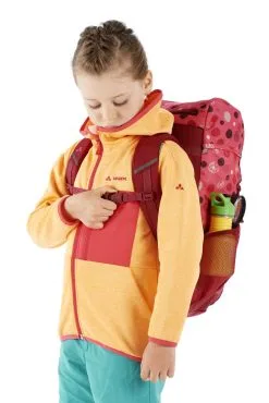 Le sac à dos enfant Skovi 15 bat des records en termes de praticabilité ! Tout ce dont la relève a besoin en chemin trouve place dans son compartiment principal, qu’il s’agisse de la boîte à sandwich, de son doudou ou d’un vêtement de rechange. À ceci s’ajoutent deux compartiments en mesh sur le côté pour loger des accessoires comme un bonnet ou une petite gourde. Ici aussi, VAUDE a de nouveau pensé à tout, avec une petite poche zippée pratique sur le rabat et des éléments réfléchissants. Et pour étancher la soif de découverte, Vaude n’a pas oublié de pourvoir le sac à dos enfant Skovi 15 d’une loupe. Un compagnon sympa pour la garderie et la vie de tous les jours, mais aussi pour les premiers circuits de randonnée et de montagne. Ce sac à dos est composé en partie de matériau recyclé et doté de la finition écologique et déperlante Eco Finish sans fluorocarbures (PFC). Le label Green Shape de VAUDE garantit un produit écologique, fonctionnel et fabriqué dans des matériaux durables certifiés bluesign®.