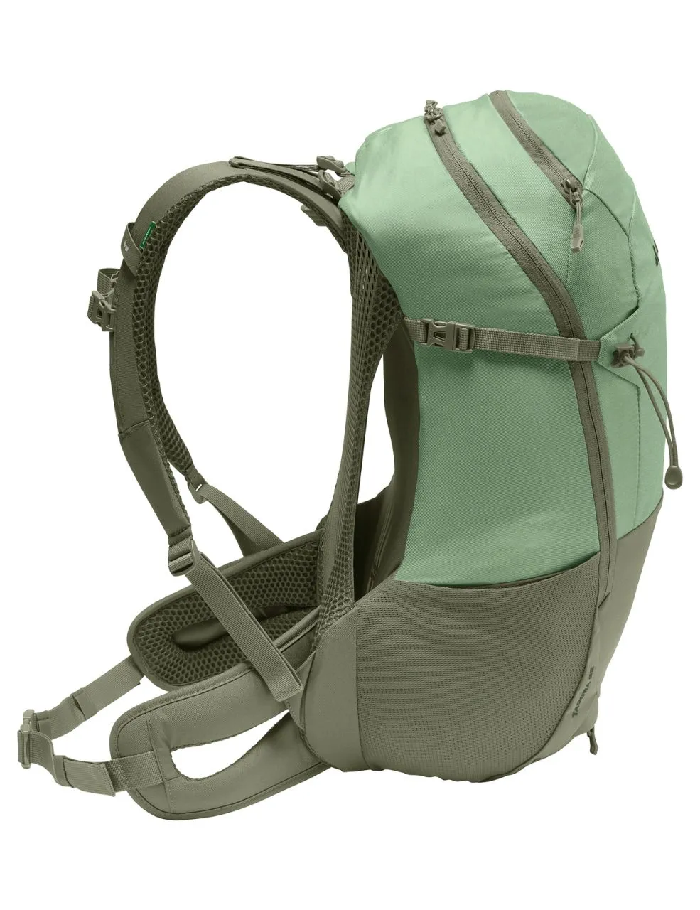 Multitalent compact pour femmes – Women’s Tacora 22 peut accueillir tout ce dont on a besoin en randonnée ou dans la vie de tous les jours en ville. Ce sac à dos de randonnée à l’équipement détaillé est un vrai champion de l’organisation : il dispose d’un compartimentage pratique composé d’une poche pour carte et d’un compartiment extractible pour tablette. Il est possible de stocker des accessoires et une gourde à portée de main dans les poches en filet latérales. Le harnais rembourré est spécialement adapté à la physionomie féminine, pour offrir au sac à dos une tenue parfaite sans serrer. Le système de portage confortable Aeroflex 3D maintient le sac à dos Women’s Tacora 22 à l’abri des soubresauts sur la distance et assure une ventilation maximale agréable dans le dos lors des ascensions éprouvantes. Quelques gestes suffisent pour fixer les bâtons de marche sur le sac à dos si nécessaire. Une housse de pluie intégrée n’écarte pas seulement l’humidité, car elle se transforme aisément en un cabas à provisions ou un sac de linge sale grâce aux anses de transport. Le label Green Shape de VAUDE garantit un produit écologique, fonctionnel et fabriqué dans des matériaux durables certifiés bluesign®.