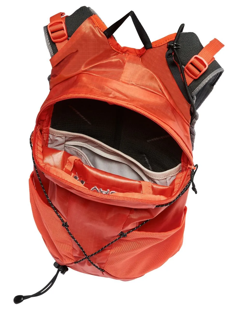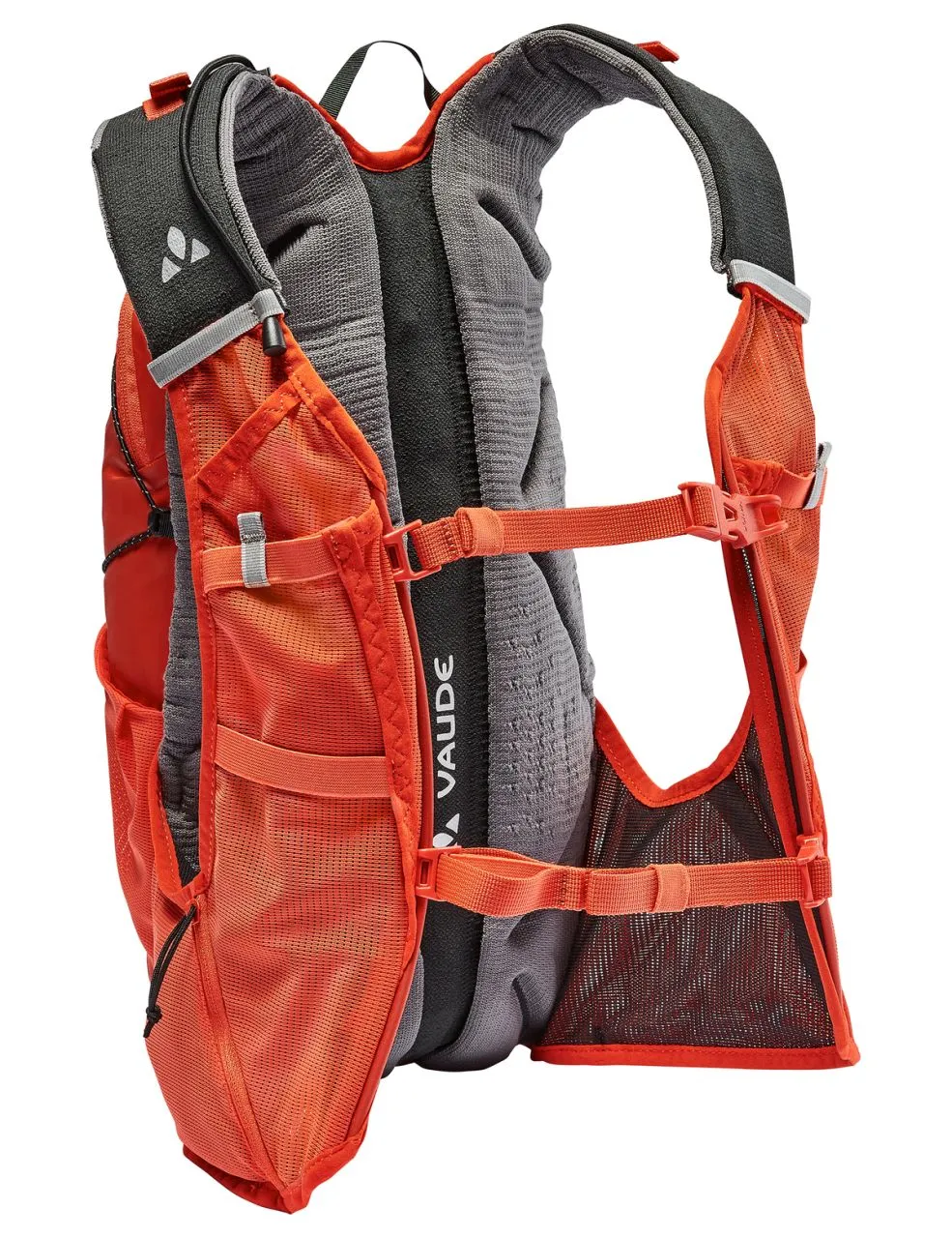 Ce sac à dos léger primé se porte comme un gilet : avec ses 8 litres de volume et son équipement bien pensé, le sac à dos Trail Spacer offre une parfaite tenue pour les virées rapides en montagne, le VTT et la rando sportive. Le système dorsal 3D innovant et confortable est désormais encore plus écologique, car il est tricoté d’une seule pièce dans un fil recyclé écologique ! Grâce à la structure tridimensionnelle du dos, Trail Spacer 8 garantit un bon climat corporel et un amortissement dorsal agréable. Les différentes zones rembourrées offrent une grande liberté de mouvement, une bonne circulation et une excellente répartition de la pression. Les bretelles du sac à dos léger offrent des logements et pochettes pour ranger des gels, une barre énergétique ou un mobile. Le compartiment principal peut accueillir une poche d’hydratation, une veste de pluie et une trousse de premiers secours. Il est possible de manipuler le porte-bâtons et les sangles de compression en portant le sac à dos. Le matériau principal en polyamide recyclé est fabriqué via une méthode du bilan massique certifiée à partir entre autres de pneus usagés recyclés. Ceci permet de réduire le CO2 jusqu’à 60 %. Grâce au tricotage en forme, la production du système dorsal ne génère aucun résidu de déchets. Le sac à dos léger est de plus climatiquement neutre : les émissions issues des matériaux, de la fabrication et du transport ont été déterminées de manière holistique et systématiquement réduites. Les émissions actuellement inévitables sont compensées par l’organisation indépendante à but non lucratif « myclimate ». Le label Green Shape de VAUDE garantit un produit écologique, fonctionnel et fabriqué dans des matériaux durables certifiés bluesign®. Conseil : toujours nettoyer le sac à dos à la main.