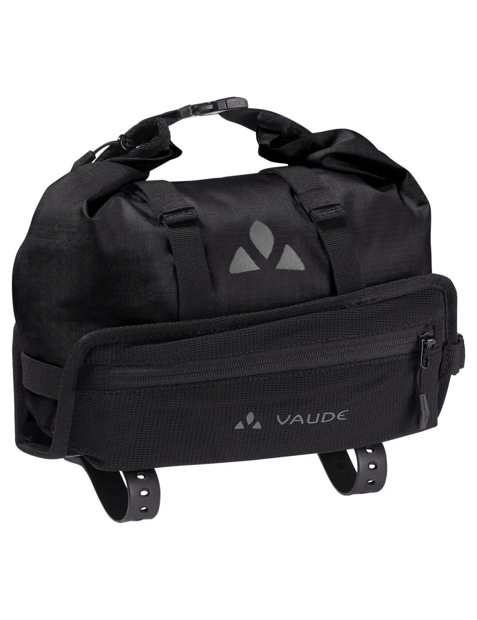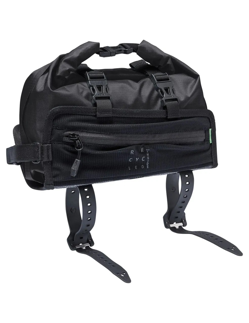 Trailguide est ce qu’il se fait de mieux en matière de sacoche de vélo ! Avec sa dimension effilée de capacité 3 l, c’est la pièce de puzzle parfaite pour tous ceux qui veulent répartir leur paquetage de manière judicieuse sur le vélo et qui prennent la sécurité au sérieux. Elle peut accueillir tous les accessoires importants comme les documents de voyage, un smartphone ou le porte-monnaie, qui doit toujours rester à portée de main et sous les yeux. Le support du Trailguide est fixé sur le tube supérieur avec 2 courroies et sur la potence de guidon via une fixation velcro pour éviter tout glissement. Deux petites poches latérales élastiques permettent de ranger une barre ou un stick à lèvres. L’organisateur de voyage imperméable est sécurisé par une fermeture à glissière et enroulé de manière imperméable selon la charge (max. 3 l) et fixé dans le support par deux sangles sécurisées par des fermoirs. Quand il s’agit de s’approvisionner rapidement lors d’un arrêt à une étape, le packsack se retire rapidement du support et se porte sur l’épaule grâce à la bandoulière fournie. La sacoche de tube supérieur n’est pas seulement une compagne pratique de bikepacking. Elle apporte aussi une contribution non négligeable en matière de protection de l’environnement, car son support comme le packsack sont composés à 100 % de matériaux recyclés.
