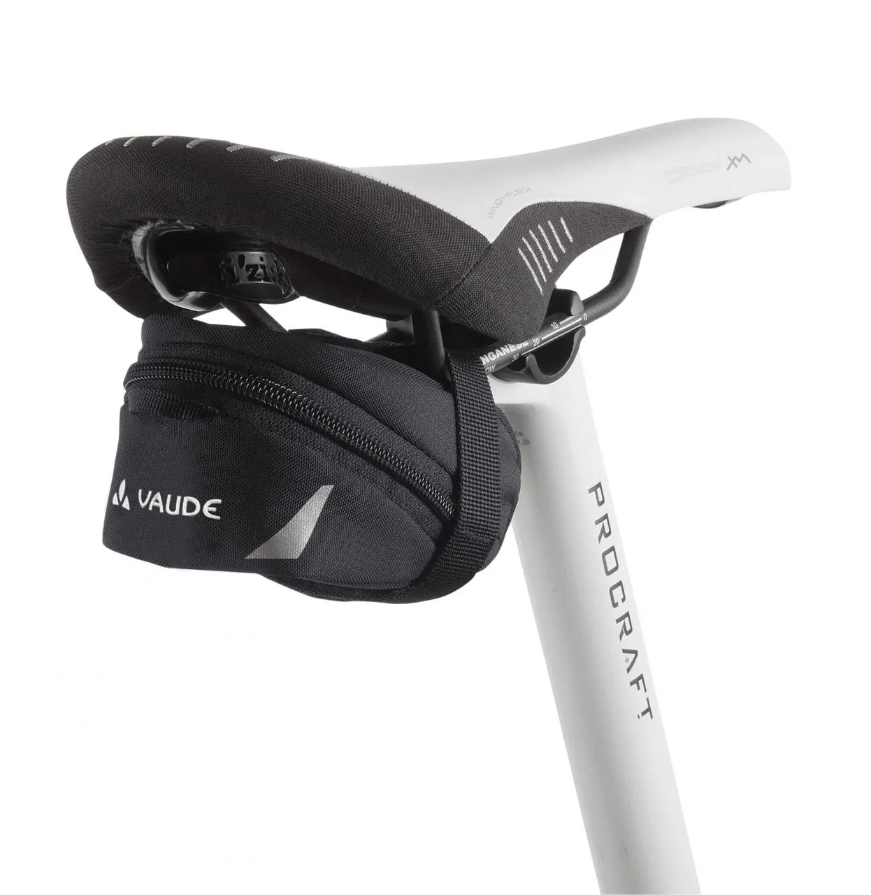 Dépanneuse écologique. Cette petite sacoche est fabriqué dans un matériau certifiée bluesign® et écologique. Elle se fixe sous la selle à l’aide d’un velcro et offre suffisamment de place pour une chambre à air de rechange et les démonte-pneus. Avec petite poche intérieure, éléments réfléchissants et porte-lumières. Le label Green Shape de VAUDE garantit des produits fonctionnels et écologiques en matières durables.