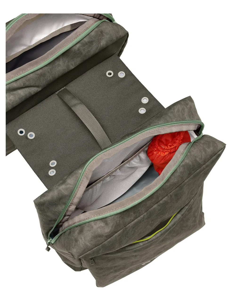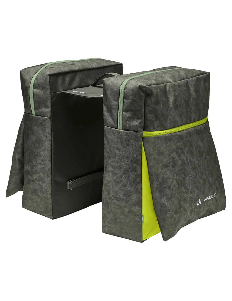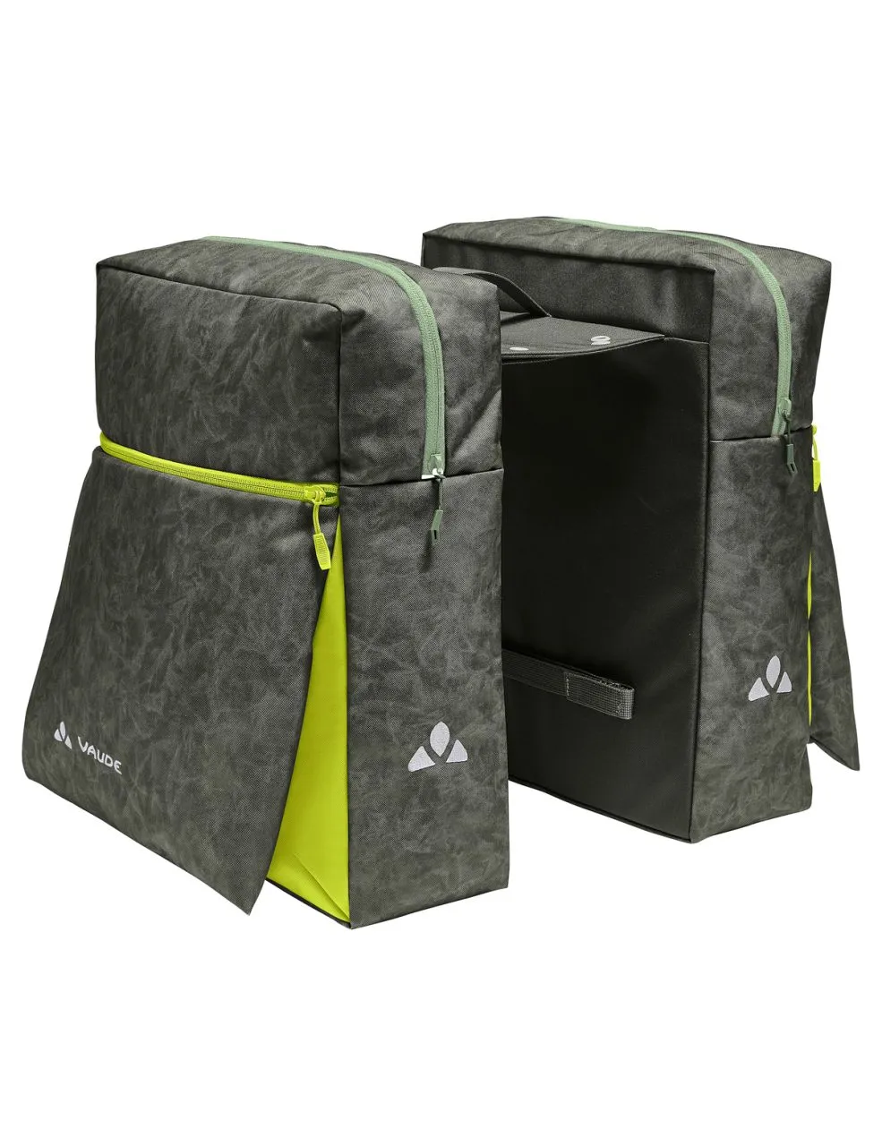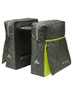 La double sacoche TwinZipper met de la couleur dans le quotidien en selle. Les zips et pièces de couleurs contrastées ainsi que l’imprimé ludique sur le matériau principal confèrent une touche très urbaine à cette sacoche. La pose et le retrait s’effectuent en quelques gestes. Les deux sacoches sont reliées par une traverse qui est simplement posée et fixée sur le porte-bagages en haut et sur le côté en bas par des bandes velcro. Ses 4 œillets intégrés permettent d’équiper ultérieurement les sacoches par un système de fixation courant (Uniklip, MIK, Snap-it, Snap-it II, I-Rack). Outre le compartiment principal zippé à ouverture large, TwinZipper est munie d’une poche zippée appliquée à l’avant pouvant accueillir tout ce qui doit rester à portée de main. Des éléments réfléchissants et les housses de pluie fournies avec les sacoches doubles composées à 100 % de polyester recyclé assurent une meilleure visibilité au crépuscule et par mauvais temps. Le label Green Shape de VAUDE garantit un produit écologique, fonctionnel et fabriqué dans des matériaux durables certifiés bluesign®. En tant que membre Leader de l’organisme indépendant Fair Wear, VAUDE s’engage en faveur de conditions de travail et de salaires équitables. Ce produit est de plus climatiquement neutre : les émissions issues des matériaux, de la fabrication et du transport ont été déterminées de manière holistique et systématiquement réduites. Les émissions actuellement inévitables sont compensées par l’organisation indépendante à but non lucratif « myclimate ».