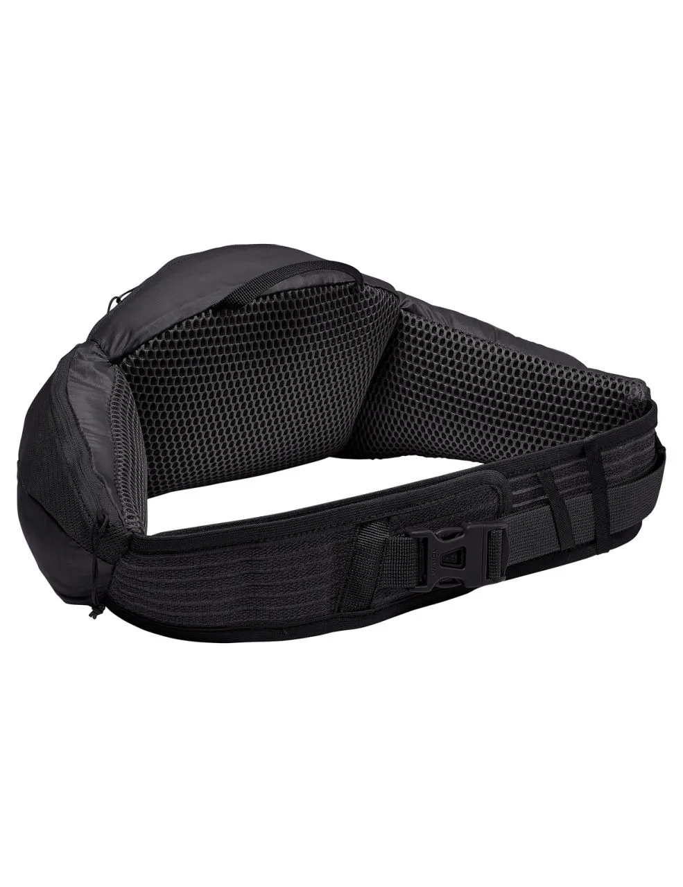 En toute détente sur la selle : le sac ultraléger de 200 g Uphill Hip Pack 2 est idéal sur les sorties rapides avec paquetage léger. Le sac banane de 2 l offre suffisamment de place pour stocker de l’outillage, un mobile et des snacks. La ceinture ventrale élastique à la coupe large dotée d’une poche zippée à droite et à gauche garantit un maintien sans secousse et accompagne chaque mouvement. Le mesh 3 D au dos et sur les stabilisateurs assure une aération constante sur le vélo ou en randonnée. Un cordon souple sur le compartiment principal et les éléments réfléchissants admirablement intégrés au design complètent l’équipement de ce sac banane très fonctionnel et compact pour le vélo. Uphill Hip Pack 2 est fabriqué en utilisant des matériaux recyclés dans le respect du climat : le matériau principal siliconé est obtenu à travers une méthode certifiée du bilan massique. De l’huile de pyrolyse qui entre dans la fabrication du polyamide conventionnel est obtenue à partir de pneus usagés. Le recyclage chimique permet de réduire les émissions de CO2 de 60 %. Ce produit est de plus climatiquement neutre : les émissions issues des matériaux, de la fabrication et du transport ont été déterminées de manière holistique et systématiquement réduites. Les émissions actuellement inévitables sont compensées par l’organisation indépendante à but non lucratif « myclimate ». Le label Green Shape de VAUDE garantit un produit écologique, fonctionnel et fabriqué dans des matériaux durables certifiés bluesign®.