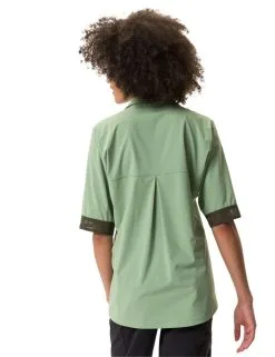 Toujours au top en selle avec le t-shirt Women’s Yaras, mais pas seulement ! Le chemisier de conception raffinée se prête aux longues sorties à vélo tout comme à un usage quotidien. Il se présente avec un col à revers féminin, qui peut se fermer en haut avec un bouton caché quand le vent se lève. Des fils discrets et réfléchissants sont entrelacés dans les extrémités des manches mi-longues. La matière stretch légère du chemisier femme de vélo est respirante, sèche rapidement et offre une liberté de mouvement illimitée grâce à un soufflet au dos. Sa coupe allongée permet au t-shirt cycliste pour femme de protéger le fessier en position de conduite sur la selle. Une méthode certifiée du bilan massique est appliquée au cours de la fabrication de la matière ultrarobuste, légère et très élastique à la fois. De l’huile de pyrolyse qui entre dans la fabrication du polyamide conventionnel est obtenue à partir de pneus usagés. Le recyclage chimique permet de réduire les émissions de CO2 de 60 %. Ce maillot femme est de plus climatiquement neutre : les émissions issues des matériaux, de la fabrication et du transport ont été déterminées de manière holistique et systématiquement réduites. Les émissions actuellement inévitables sont compensées par l’organisation indépendante à but non lucratif « myclimate ». Le label Green Shape de VAUDE garantit un produit écologique, fonctionnel et fabriqué dans des matériaux durables certifiés bluesign®.