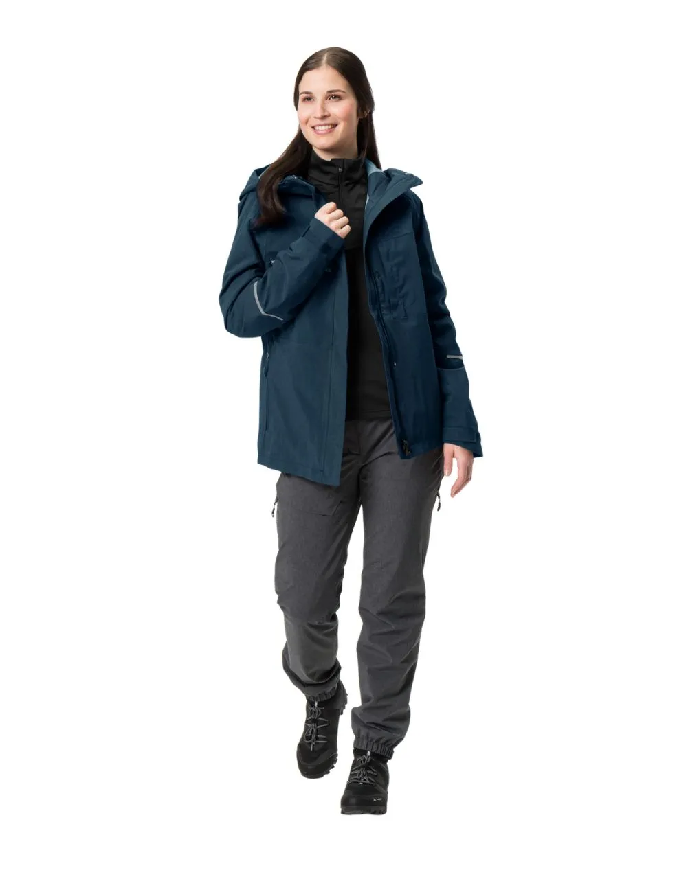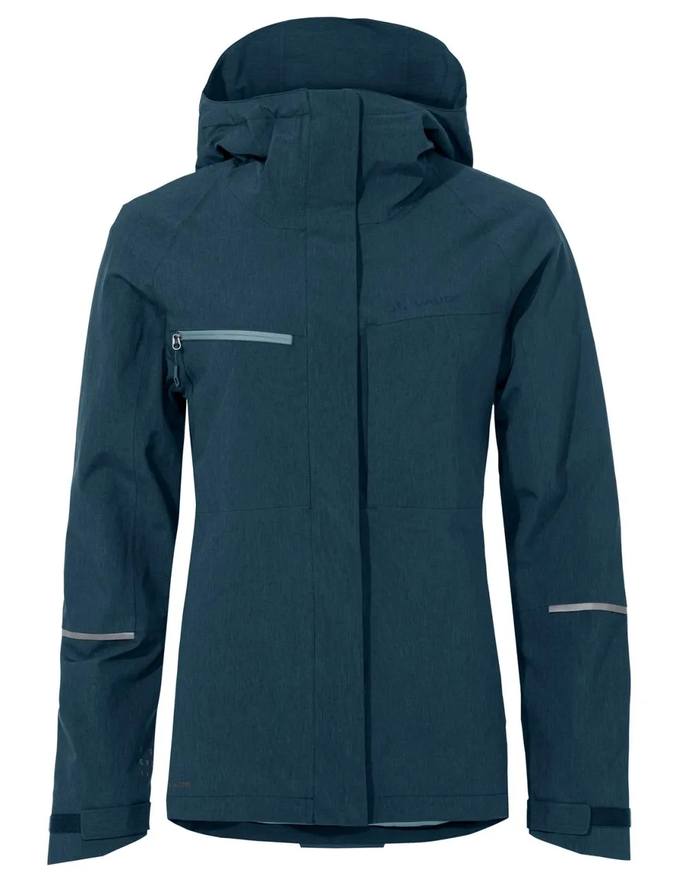 Style et fonction réunis dans une veste : la veste de cyclisme Women’s Yaras Warm Rain confortable, indémodable et richement équipée est imparable contre la pluie et le froid pour les adeptes du vélo écolos dans l’âme. Elle est efficacement imperméable, coupe-vent et dotée d’un rembourrage écologique, léger et haut de gamme Black. Des poches zippées spacieuses et imperméables peuvent accueillir un mobile, un porte-monnaie et d’autres accessoires précieux. La capuche réglable en largeur est compatible avec un casque et la veste est munie d’éléments réfléchissants. Sur les longues distances éprouvantes, les zips de ventilation aux avant-bras harmonisent le climat corporel. Les poignets réglables en largeur avec des ourlets intérieurs doux laissent le froid dehors sur les longs parcours. La veste de pluie Yaras polyvalente est ainsi parfaite pour les vélotafeuses convaincues, les parcours cyclistes allongés ou le quotidien urbain. Le matériau fonctionnel de cette veste cycliste fonctionnelle est principalement recyclé. Cerise sur le gâteau : la veste Women’s Yaras Warm Rain Jacket est de fabrication 100 % climatiquement neutre. Les émissions issues des matériaux, des processus de fabrication et du transport ont été déterminées de manière holistique et systématiquement réduites. Les émissions actuellement inévitables ont été entièrement compensées par l’organisation indépendante à but non lucratif « myclimate ». En tant que membre élevé au rang de Leader de l’organisme indépendant Fair Wear, VAUDE s’engage en faveur de conditions de travail et de salaires équitables. Le label Green Shape de VAUDE garantit un produit écologique, fonctionnel et fabriqué dans des matériaux durables.